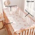 Comprar Juego de parachoques para cuna de bebé recién nacido, Sábana plana de algodón con estampado de dibujos animados, malla transpirable, Reductor de cuna, valla lateral, 5 uds.