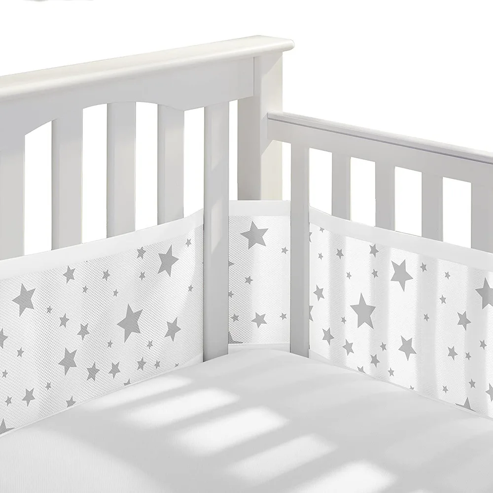 Juego de parachoques para cuna de malla transpirable para bebé, Protector de circunferencia suave, cómodo y seguro, forro de cuna transpirable, accesorios para cuna de bebé, 2 uds.