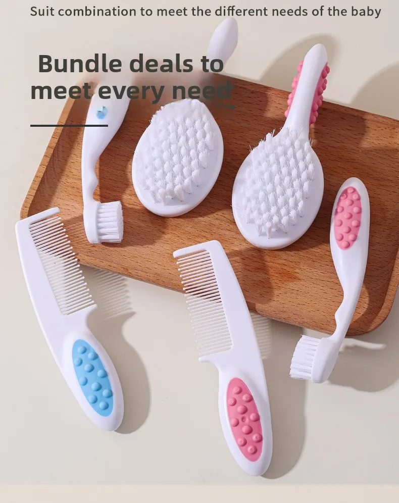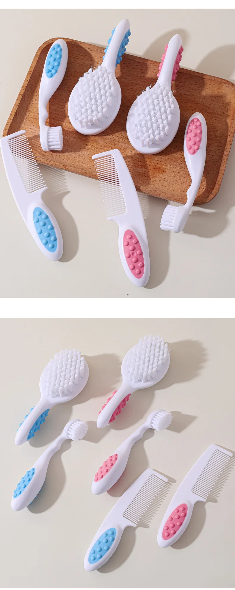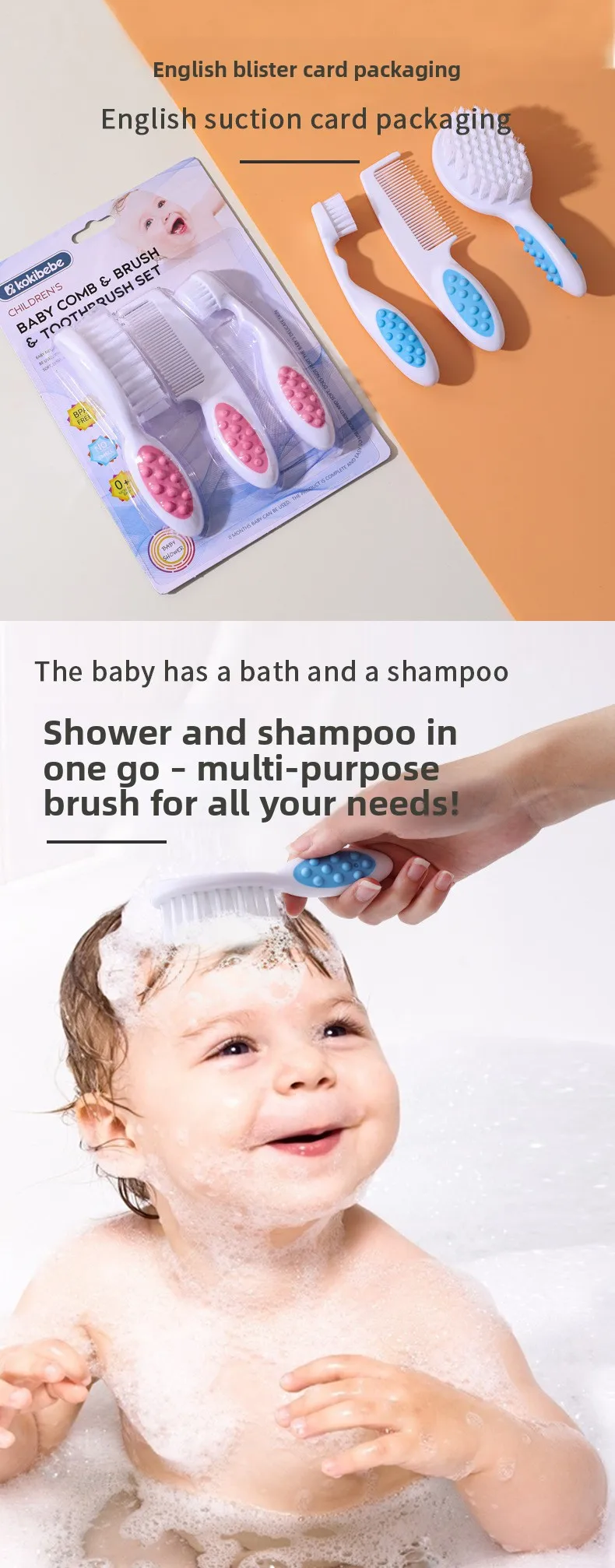 Juego de peine de baño y lavado de pelo para bebé + kit de cuidado bucal: cepillo de dientes de cerdas suaves de cabeza pequeña, peine suave: agradable para la piel, apto para las encías, todo en uno