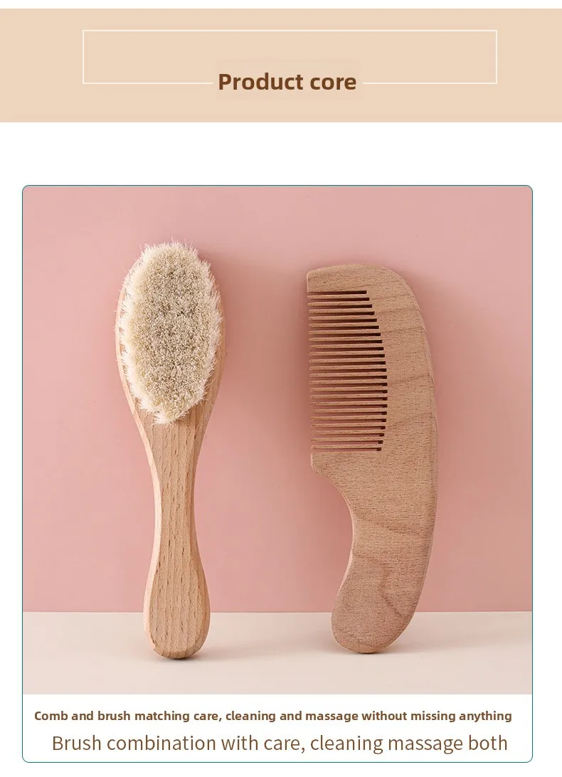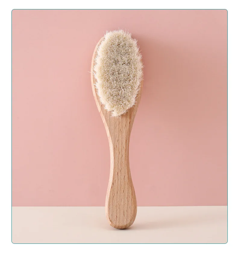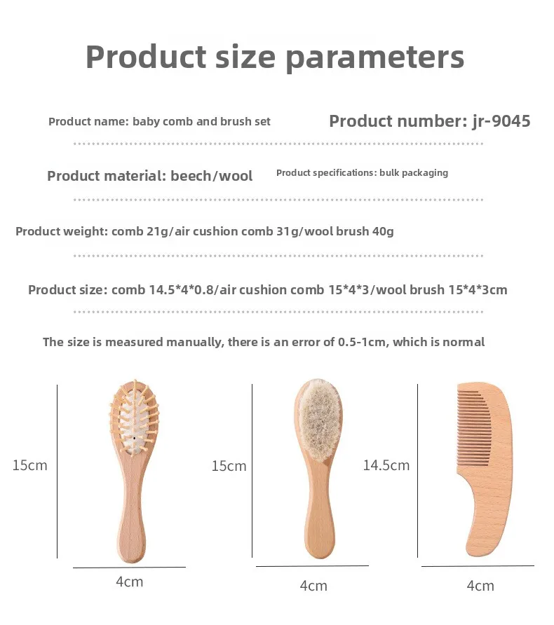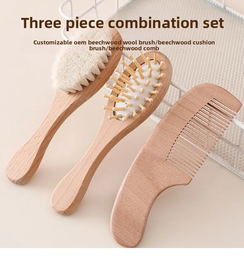 Juego de peines 3 en 1 para bebé: cepillo de lana de haya, peine de dientes redondos y peine con cojín de rebote: ¡suave, seguro, tipo al cuero cabelludo del bebé!
