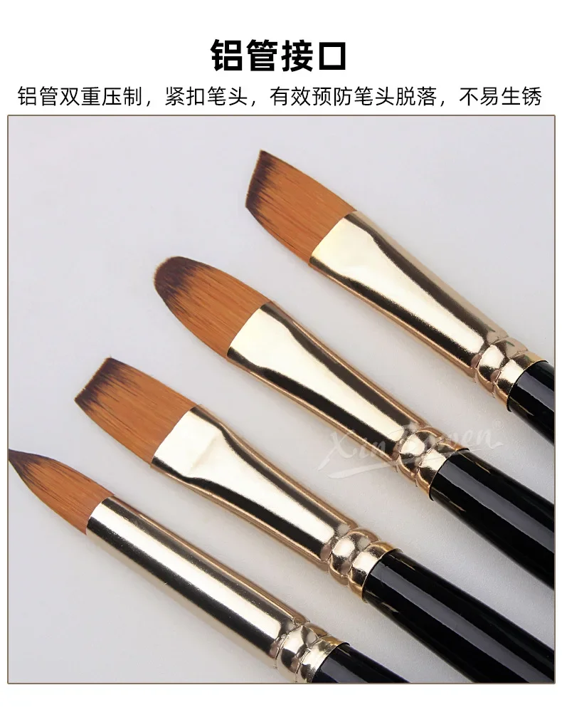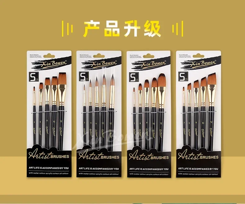 Juego de pinceles de cerdas de nailon, 5 uds., pinceles planos, pintura al óleo de acuarela para artistas, pinturas aficionados y acrílicas, pinceles de tela