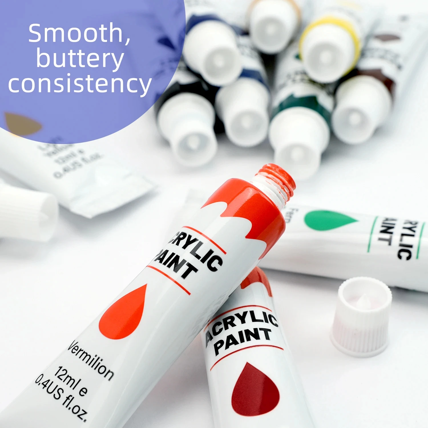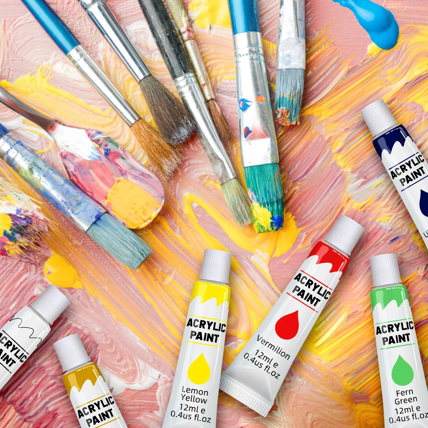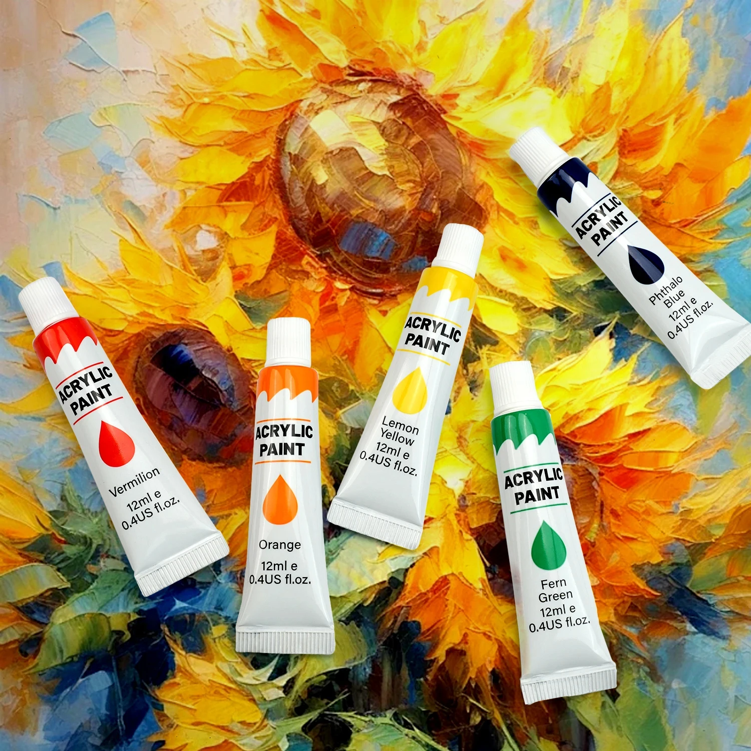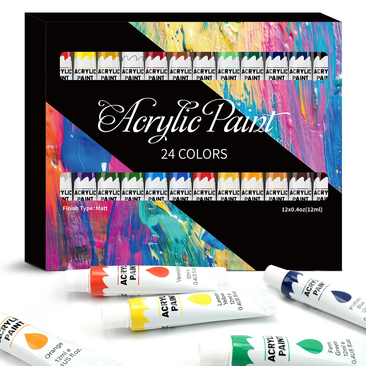Comprar Juego de pinturas acrílicas, 12/24 colores, 12ml, kit de pintura artística, suministros para madera, lienzo, tela, roca, vidrio, pintura acrílica no tóxica