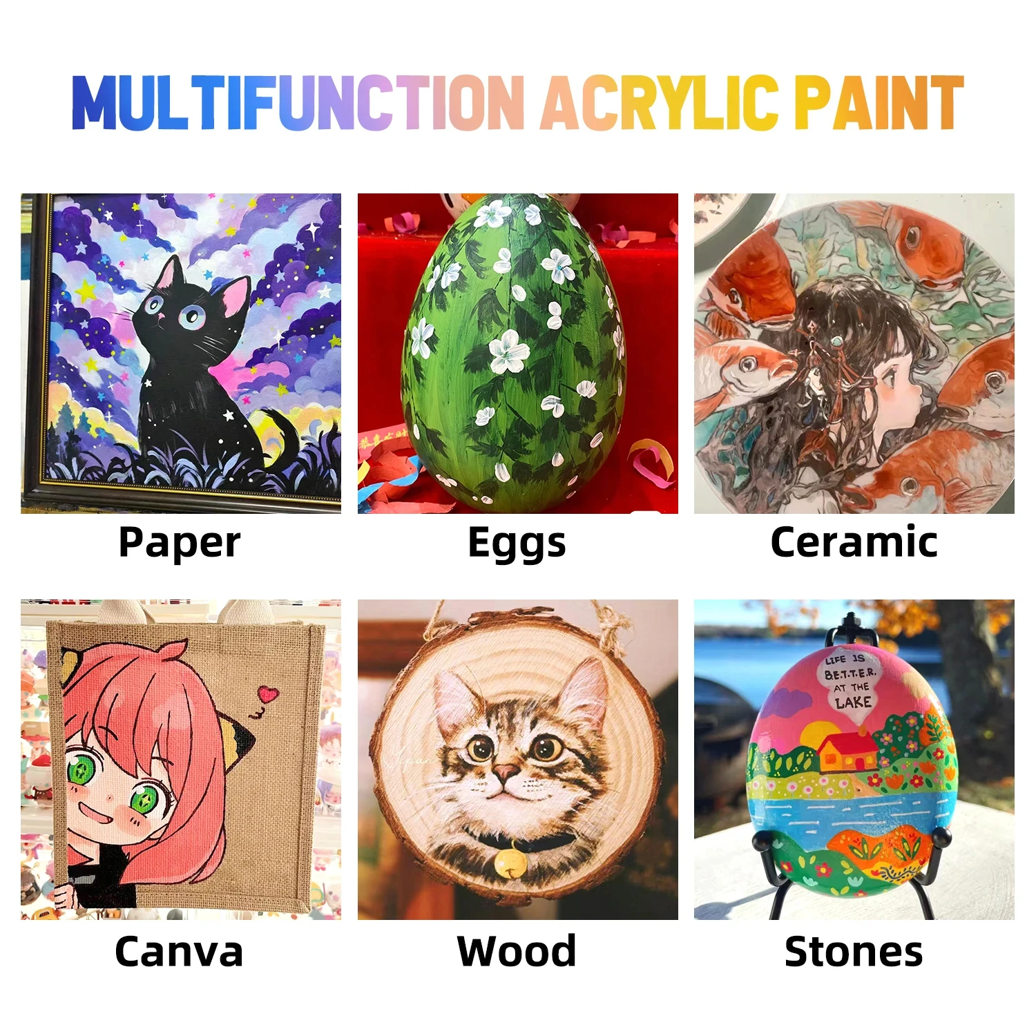 COLORES VIVOS: el juego de pintura acrílica contiene 12/24 colores vibrantes: este juego viene con 12/24 colores vibrantes por tubo de 12 ml.Nuestro juego de pintura para adultos y niños está diseñado exclusivamente para resaltar el máximo brillo y claridad de color.La rica viscosidad también facilita la mezcla.Gran pintura acrílica para pintura sobre lienzo, decoraciones de Halloween, pintura de calabazas.