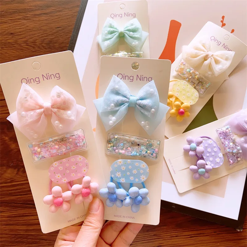 Comprar Juego de pinzas para el pelo para niña pequeña, lazo Floral, horquilla, banda elástica para el pelo, accesorios para el cabello encantadores