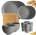Comprar Juego de platos de comida no frágiles, vajilla de paja de trigo, lavavajillas para microondas, vajilla segura y reutilizable, 16 piezas por juego