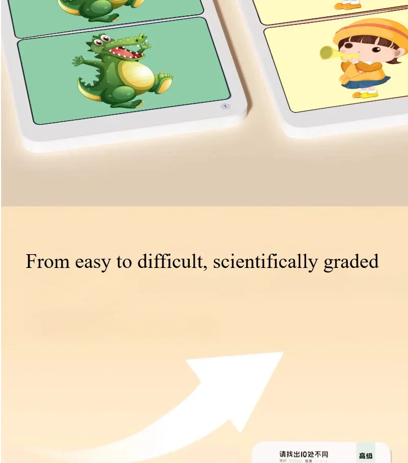 Juego de rompecabezas Find The Difference de 64 páginas, enfoque borrable y regrabable y entrenamiento de observación, juguete para el desarrollo del cerebro para niños
