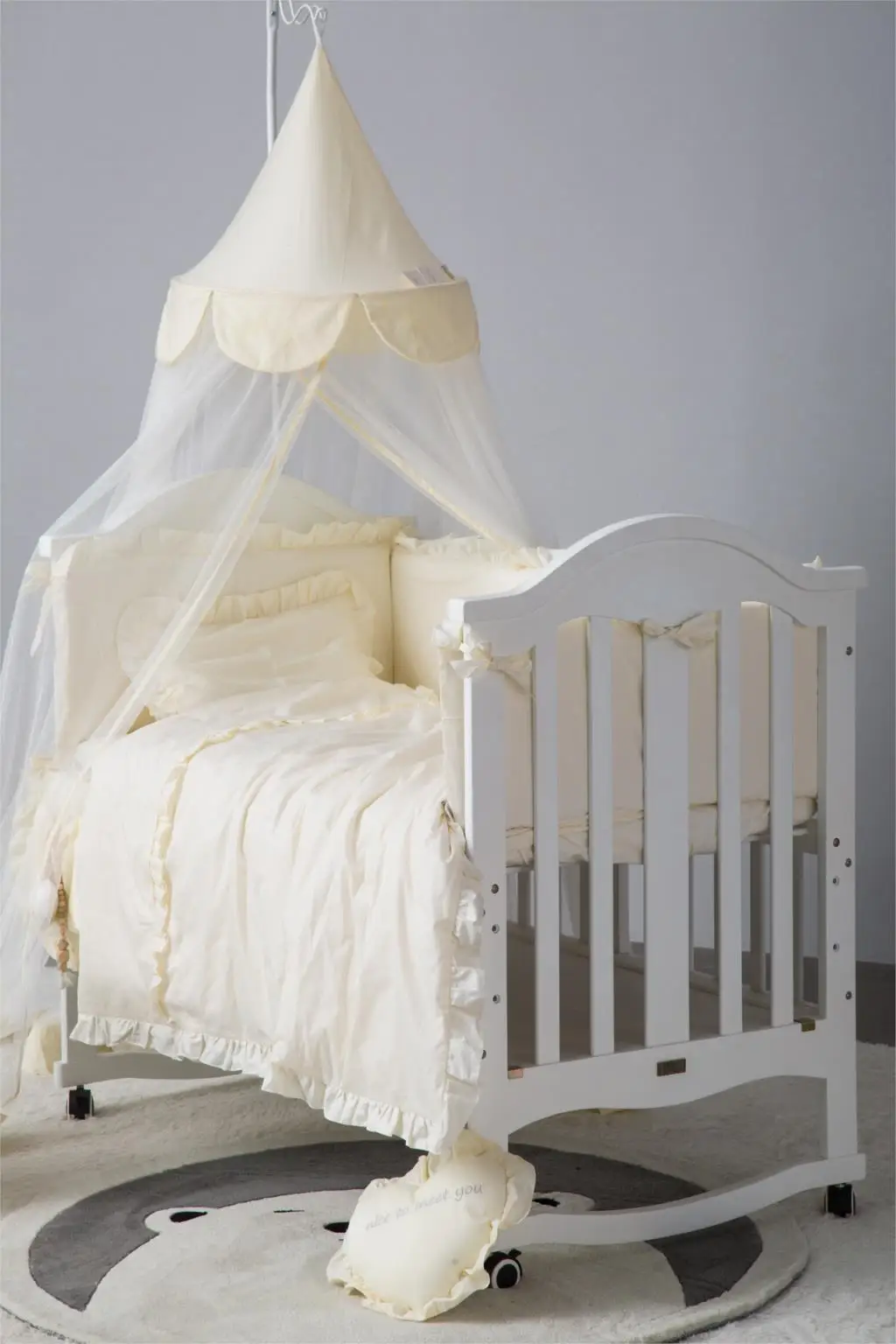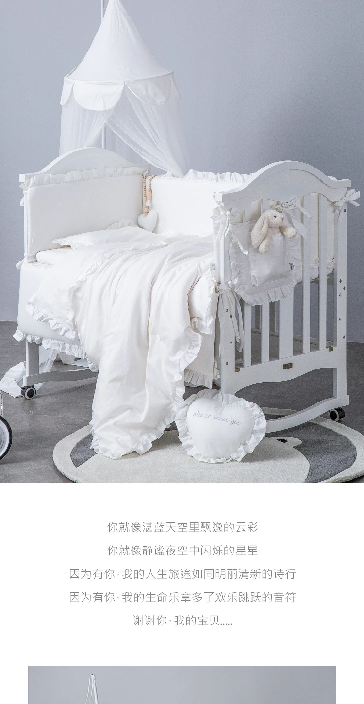 Comprar Juego de ropa de cama de algodón para bebé, Protector de cuna lavable, parachoques, funda de edredón de encaje, Sábana de almohada para niña, rosa, 7 Uds.