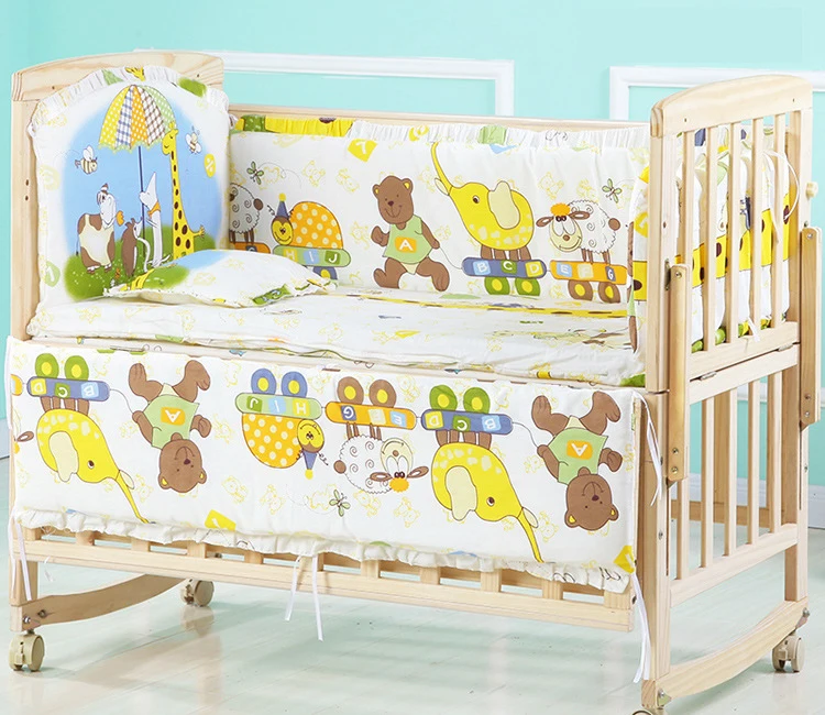 Comprar Juego de ropa de cama suave con dibujos animados para bebé, cojín de almohada de algodón, Protector de cuna, decoración de habitación, 5 unidades