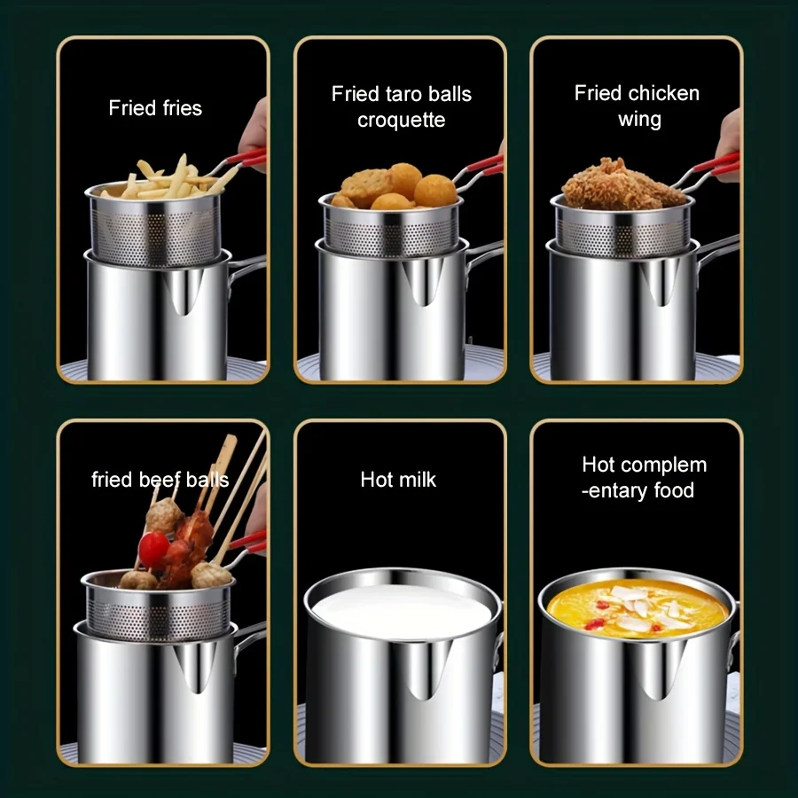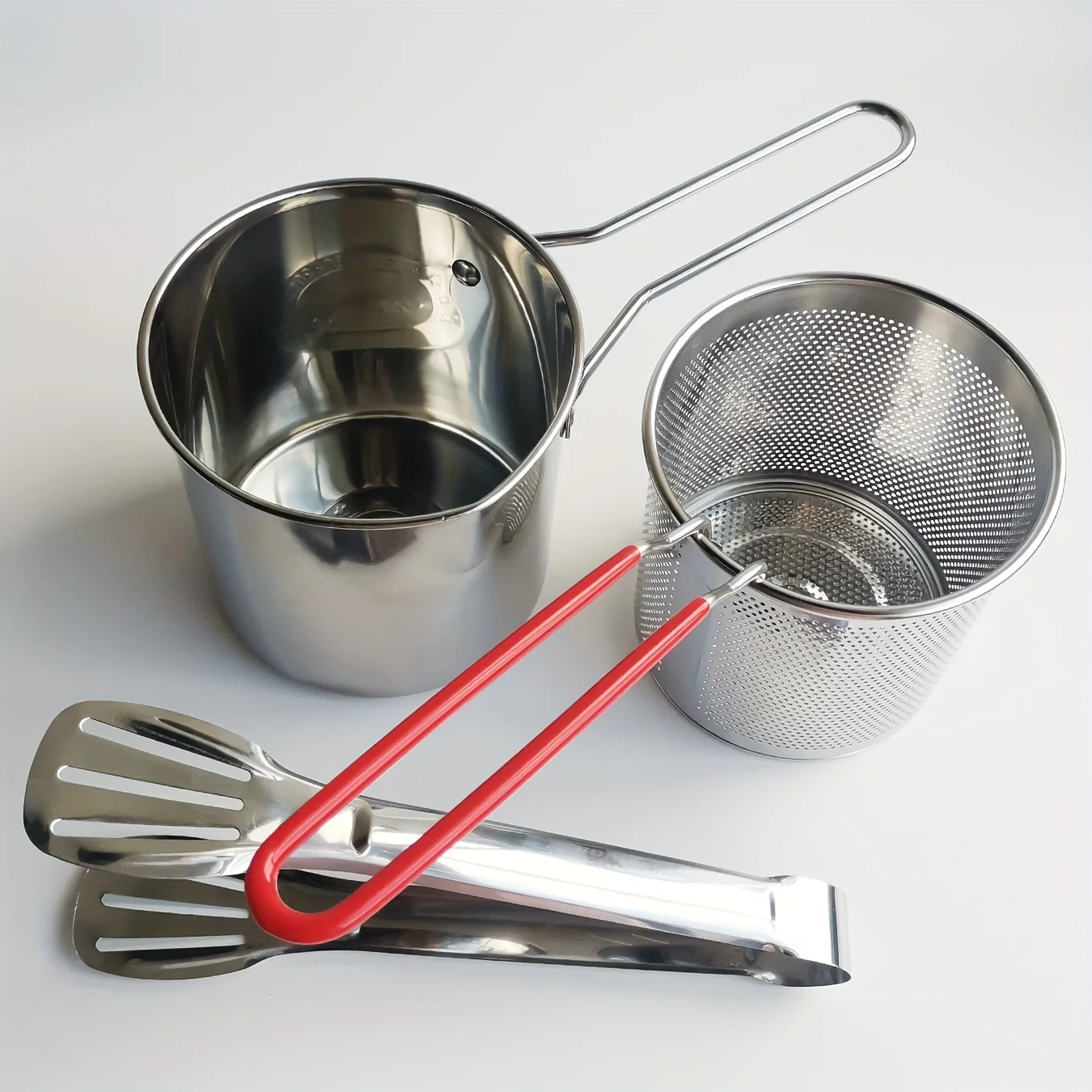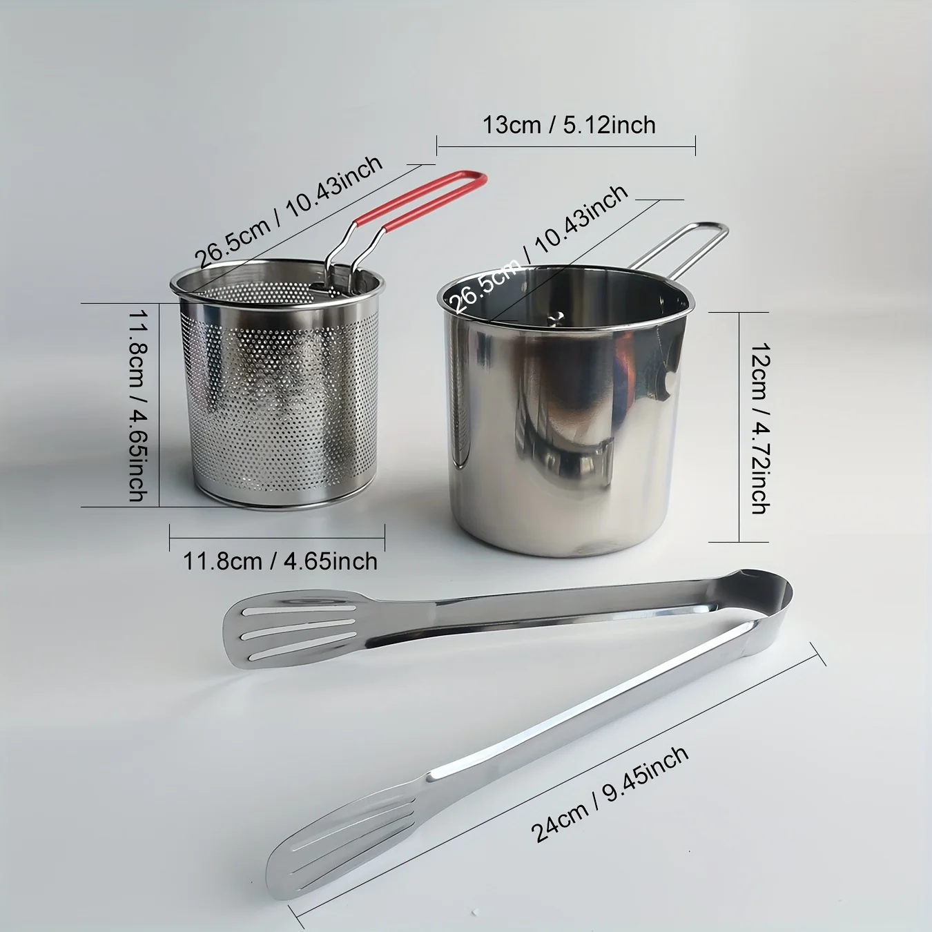 Juego de sartenes para freír profundas de 3 piezas, adecuado para freír, muy eficiente y ahorrador de energía, sartén profunda esencial para exteriores