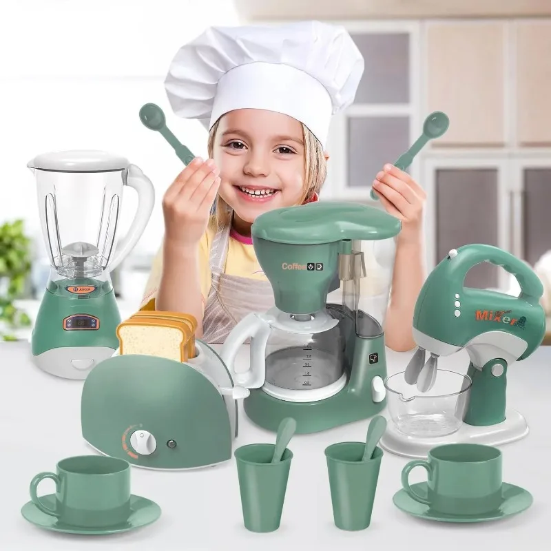 - 1. Juego de electrodomésticos de cocina: juguetes de cocina para niños que incluyen cafetera, batidora, tostadora, licuadora y horno con luz, tazas y cucharas realistas.Surtido de juguetes de electrodomésticos de cocina para que tu pequeño tenga innumerables horas de diversión y juego.