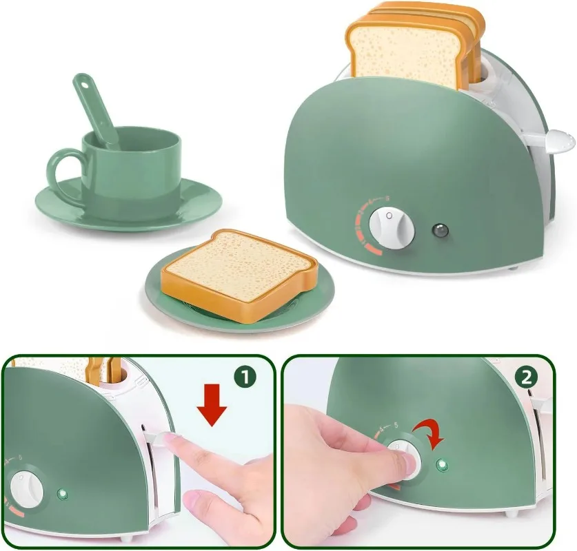 - 2.Función real: Mezclador con látigo giratorio.Tostadora con Temporizador y Toast emergente.Licuadora rellenable con función giratoria. Cafetera para jugar de simulación con efectos de sonido. Horno y estufa en uno, puedes abrir la puerta del horno y poner tu "pizza", etc. ¡Los niños pueden hacer lo mismo que en una cocina real!