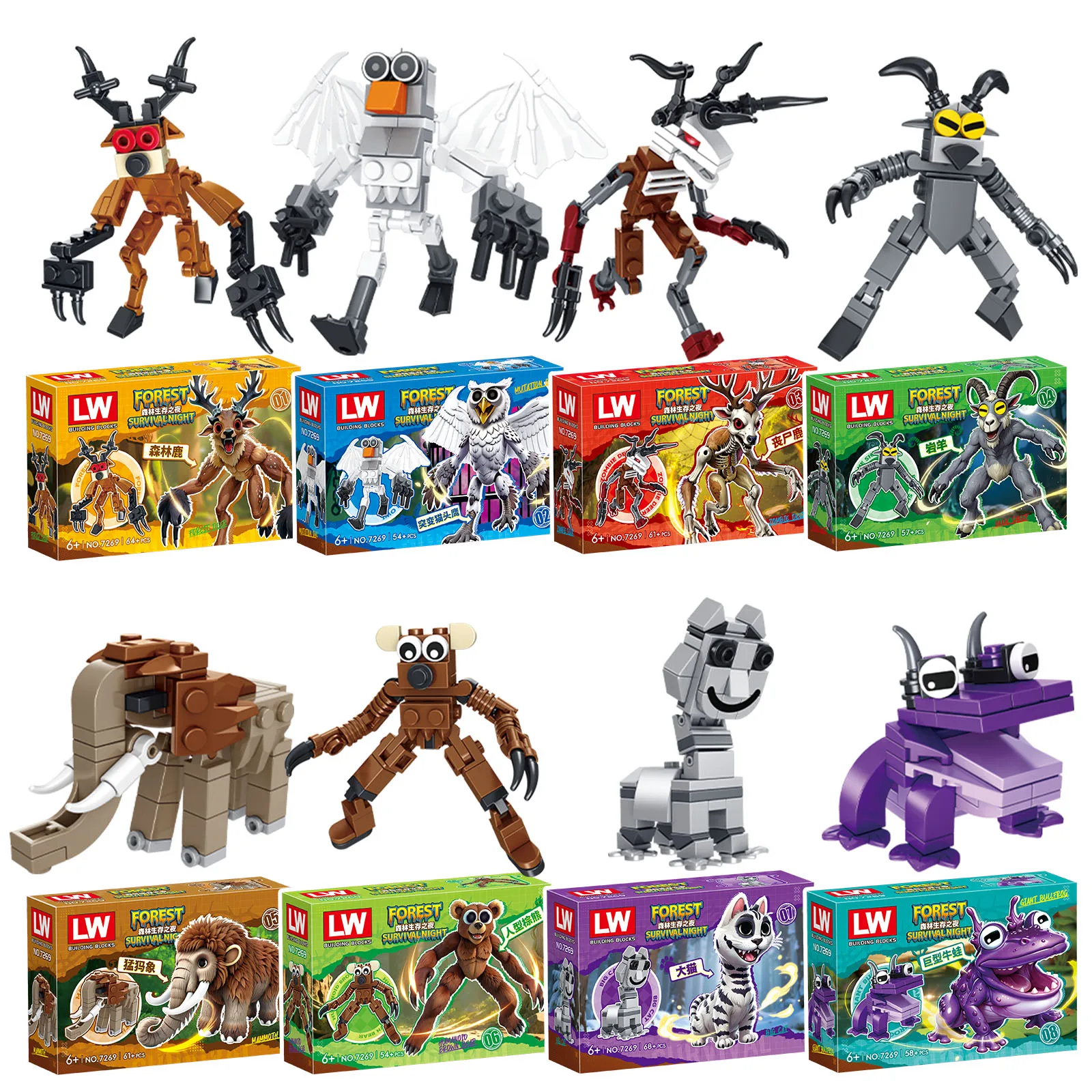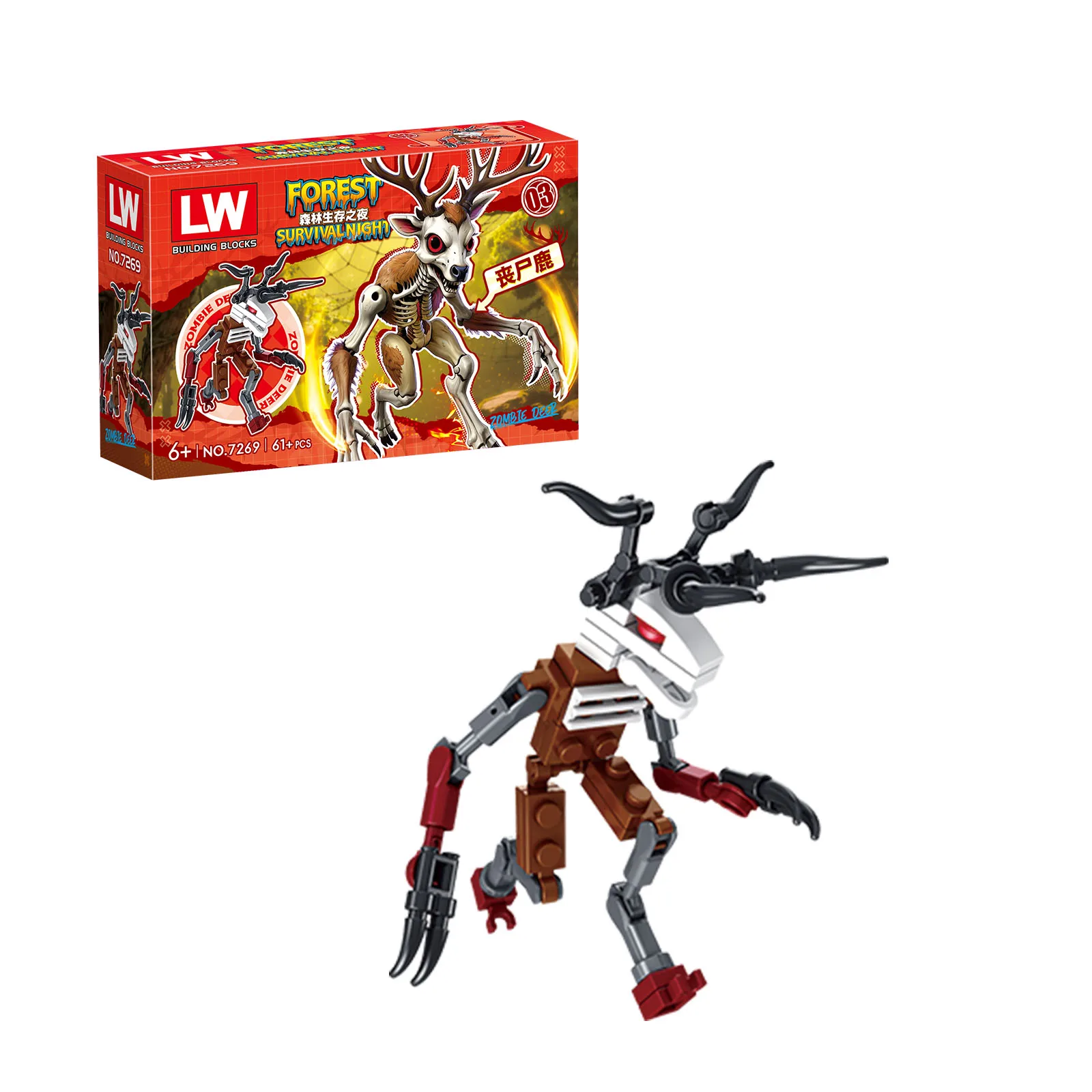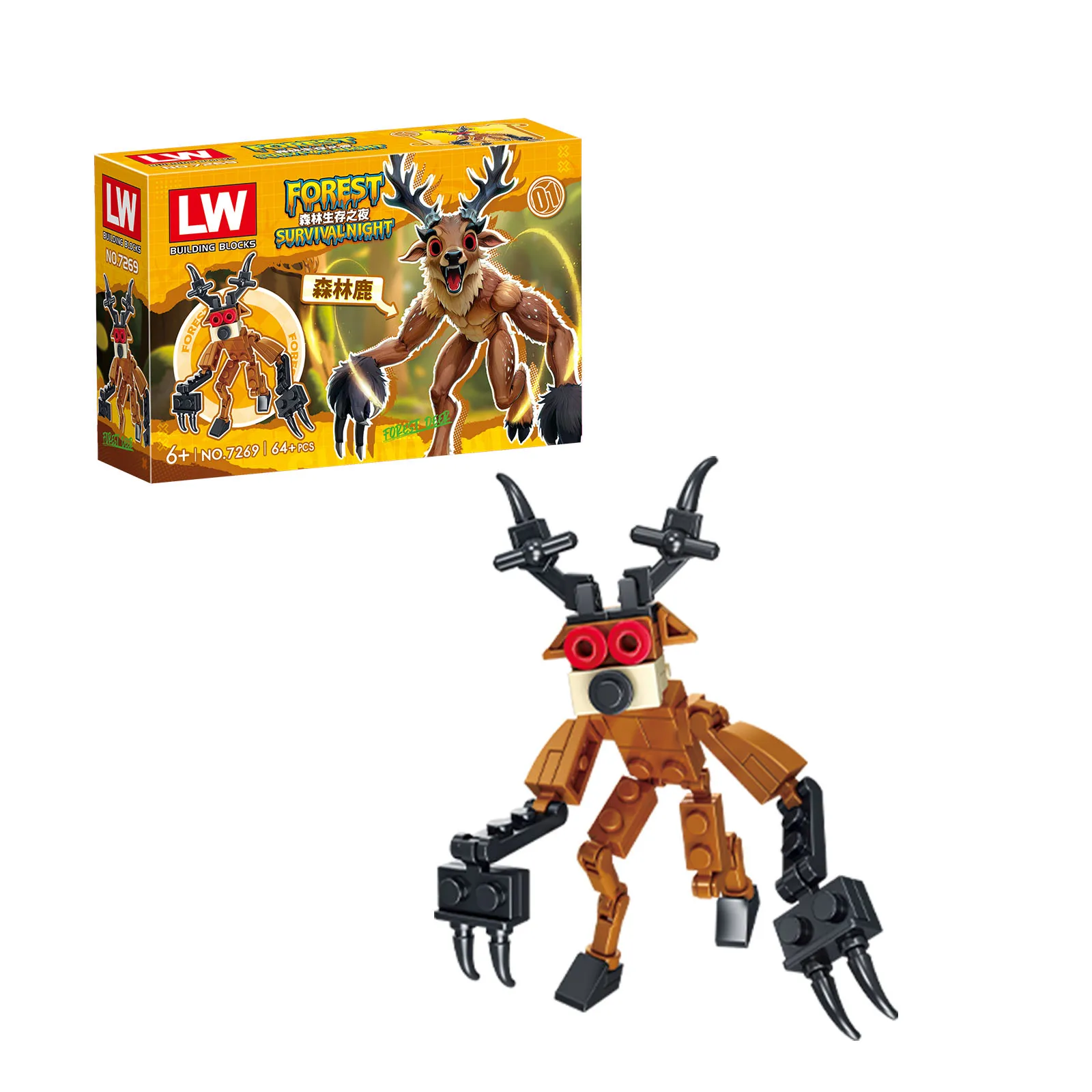 Comprar Juego de terror 99 noches en el bosque ciervo Ram búho caja ciega bloques de construcción creativos modelos DIY montar ladrillos juguetes para niños regalos