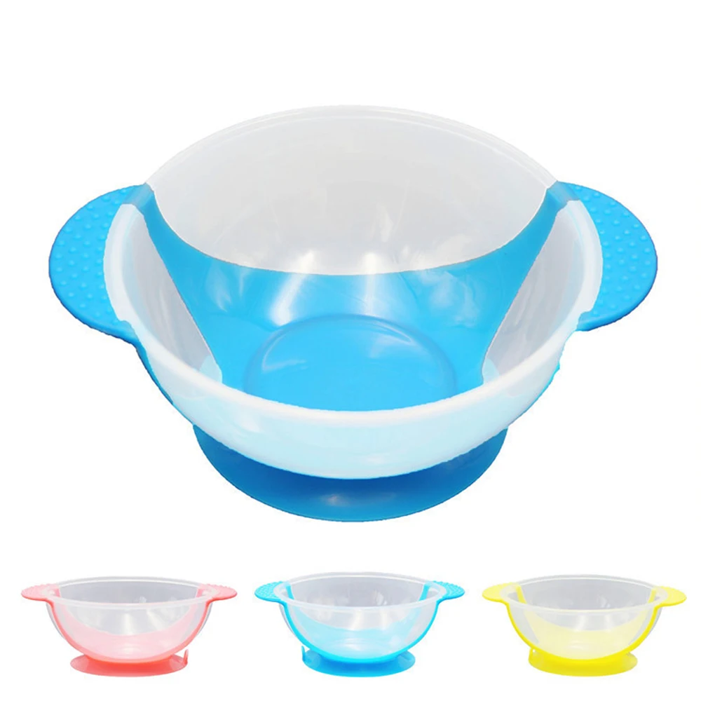 Juego de vajilla de aprendizaje para bebé, plato de servicio, bandeja con ventosa, cuchara de alimentación con detección de temperatura, tazón de comida