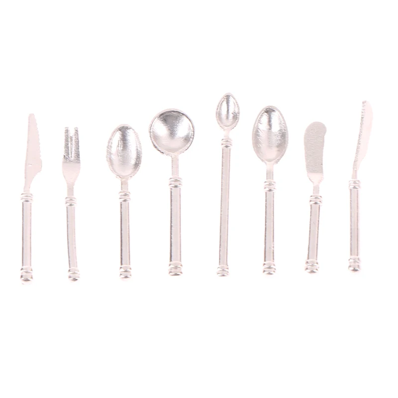 Comprar Juego de vajilla de comida occidental para casa de muñecas, Mini cuchillo, tenedor, cuchara, accesorios de decoración de cocina, 1/12