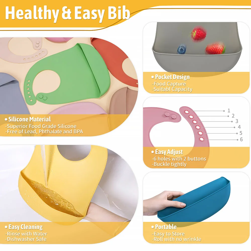 The high-quality silicone makes them soft and gentle for full safety, yet unbreakable so you don't need a replacement. This baby eating supplies set is easy to clean, dry quickly, and non-porous to avoid bacteria build-up. every piece is dishwasher safe, easy to wipe down, and suitable for microwaves and refrigerators. You can spend more time with your little one and spend less time cleaning.