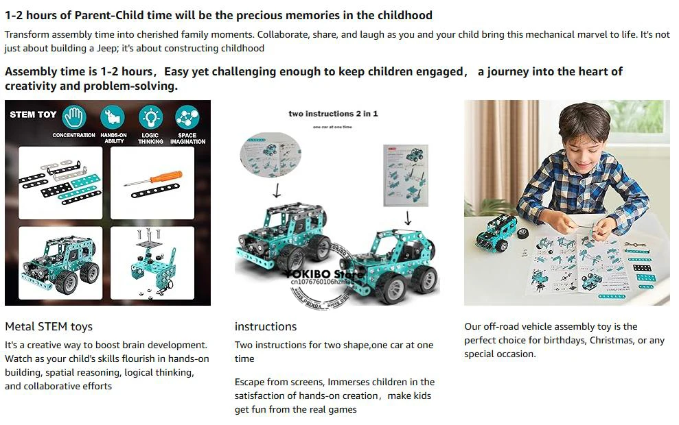 Juegos de construcción Conjunto de vástago Puzzle 3-D de metal Modelo todoterreno Kit de construcción de automóviles Juego de construcción Juguetes Interacción entre padres e hijos Juegos de construcción Regalos para niños