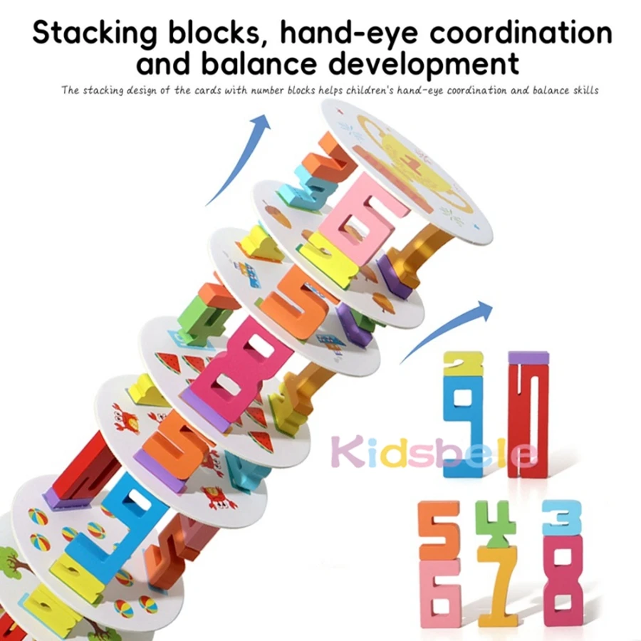 Juguete apilable de torre numérica Montessori para niños pequeños, aprendizaje temprano de matemáticas, conteo, equilibrio y coordinación mano-ojo