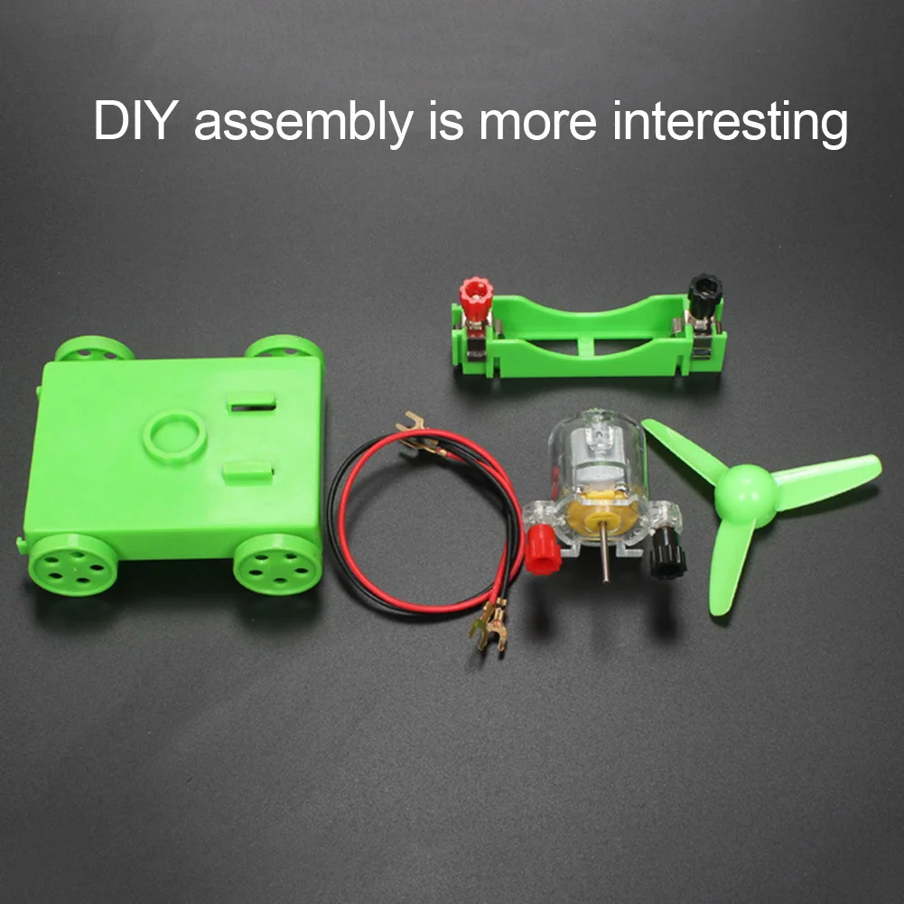 Ensamblaje DIY coche eléctrico energía eólica experimento física aprendizaje estudiante juguete