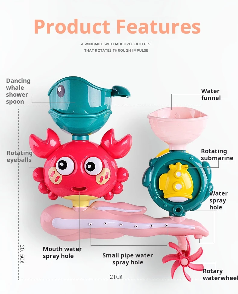 Juguete de baño de agua para bebé, juego en rueda de agua de cangrejo, pistola de agua de flores para niños, diversión en la bañera de ducha con ventosa en la pared, regalo para niños