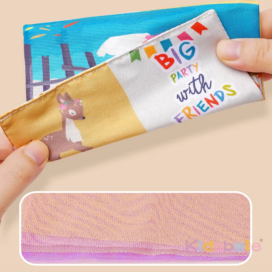 RECONOCIMIENTO DE COLOR Y VERA: Hay tres papeles arrugados y 10 pañuelos de seda arcoíris de malabarismo en la caja de pañuelos de juguete.Los patrones de animales combinados con las escenas reales crean una atmósfera de los mundos del mar y del bosque, los números, palabras, etc., son lindos y divertidos, ayudando al bebé a identificarlos.