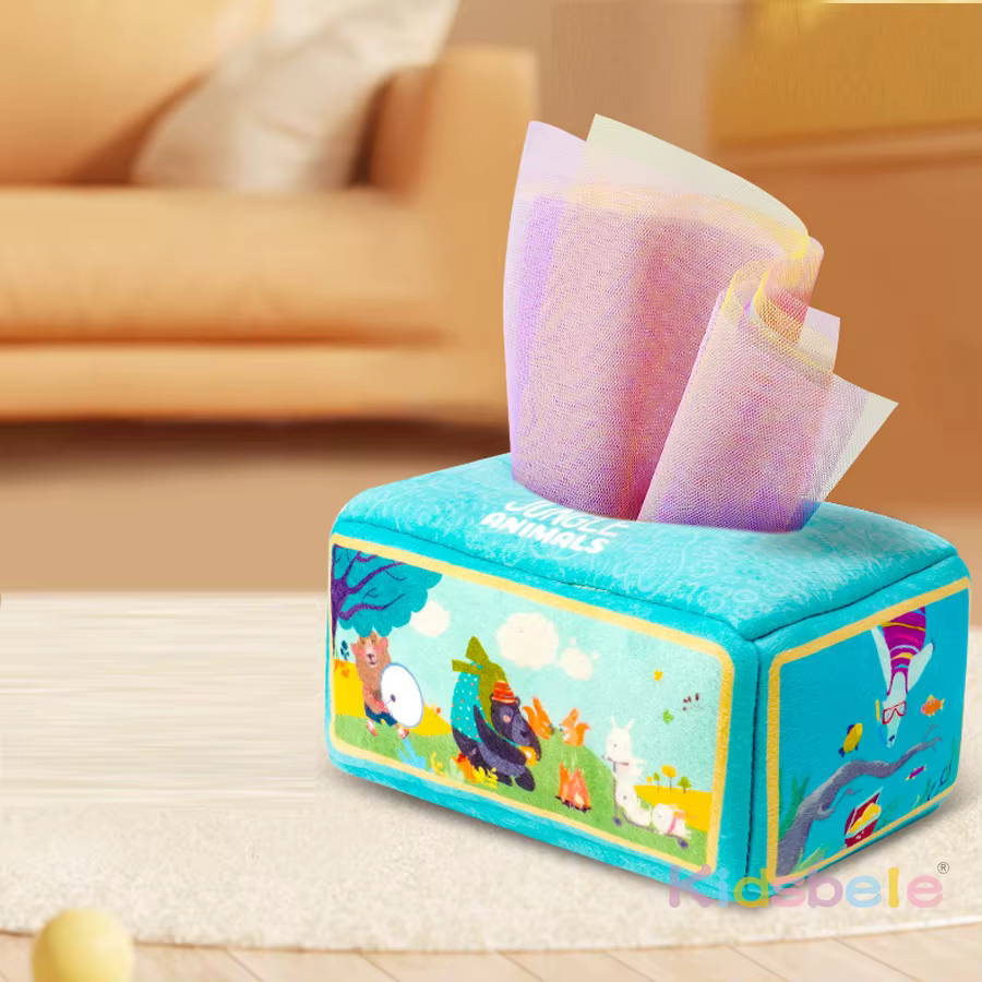 【La satisfacción del cliente es la máxima prioridad】 Nuestros juguetes Montessori para bebés adoptan un diseño seguro y apto para niños. La satisfacción del cliente es nuestra mayor motivación, no dude en contactarnos si tiene algún problema con esta caja de pañuelos de juguete.