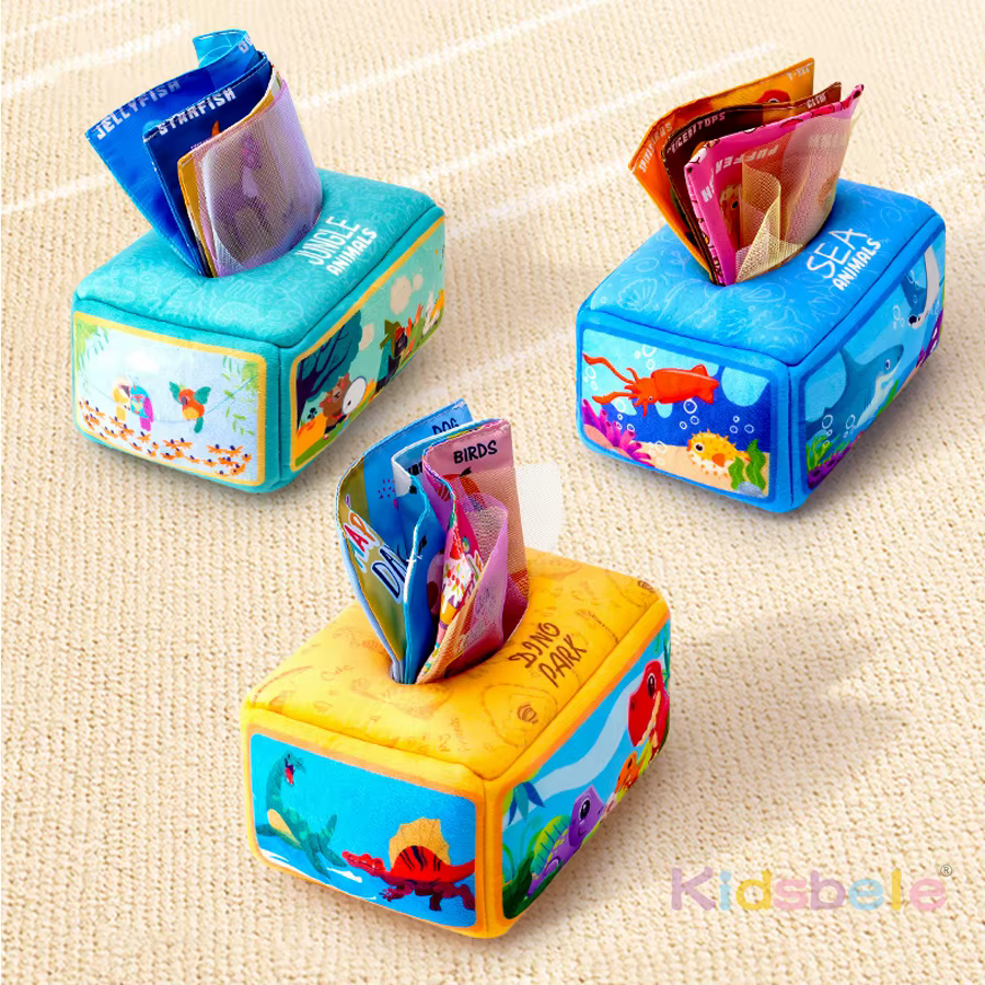 【DIFERENTES TEMAS】Tema: animales, océano, dinosaurios.Caja de pañuelos para bebés, caja de pañuelos resistente al desgarro, libro de tela para educación infantil, material didáctico para bebés de 0 a 3 años