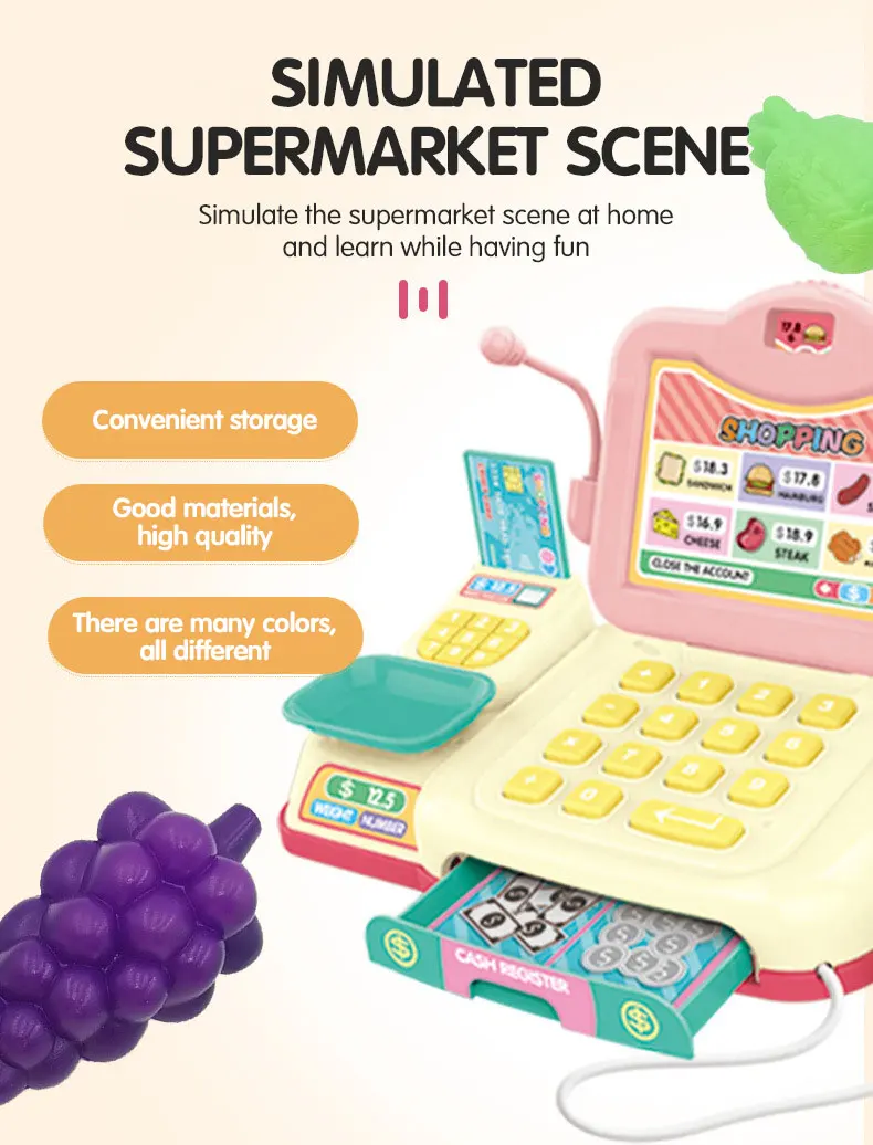 1. El juguete de la caja registradora es suave, resistente y suave para jugar.