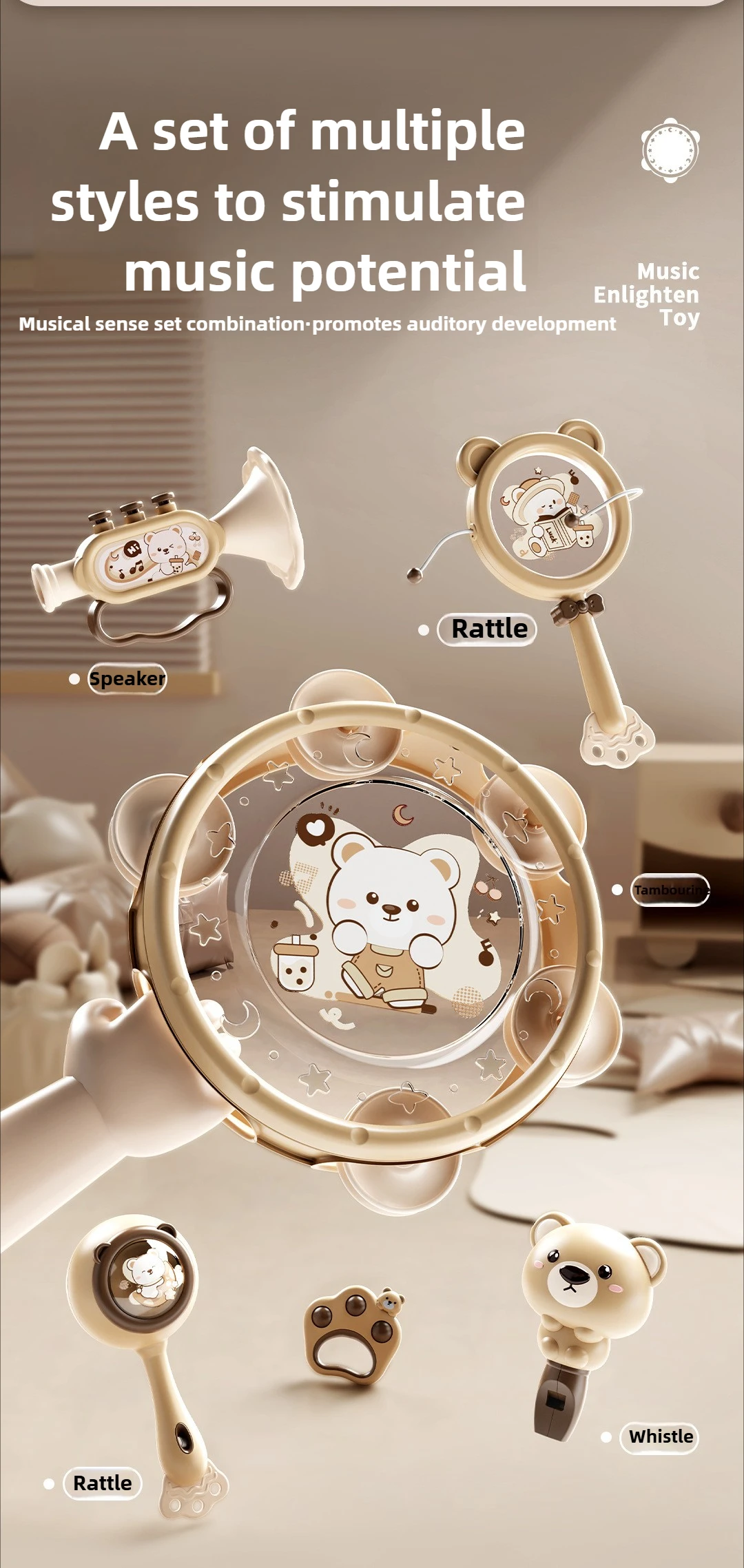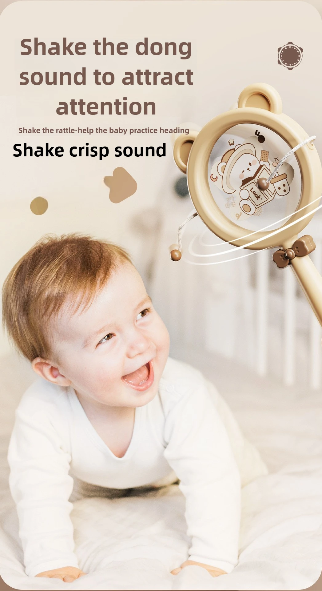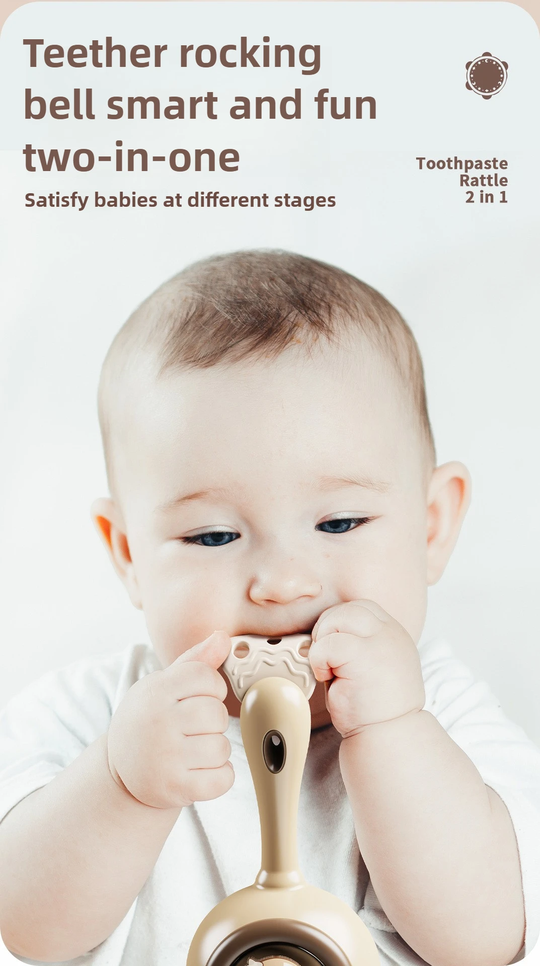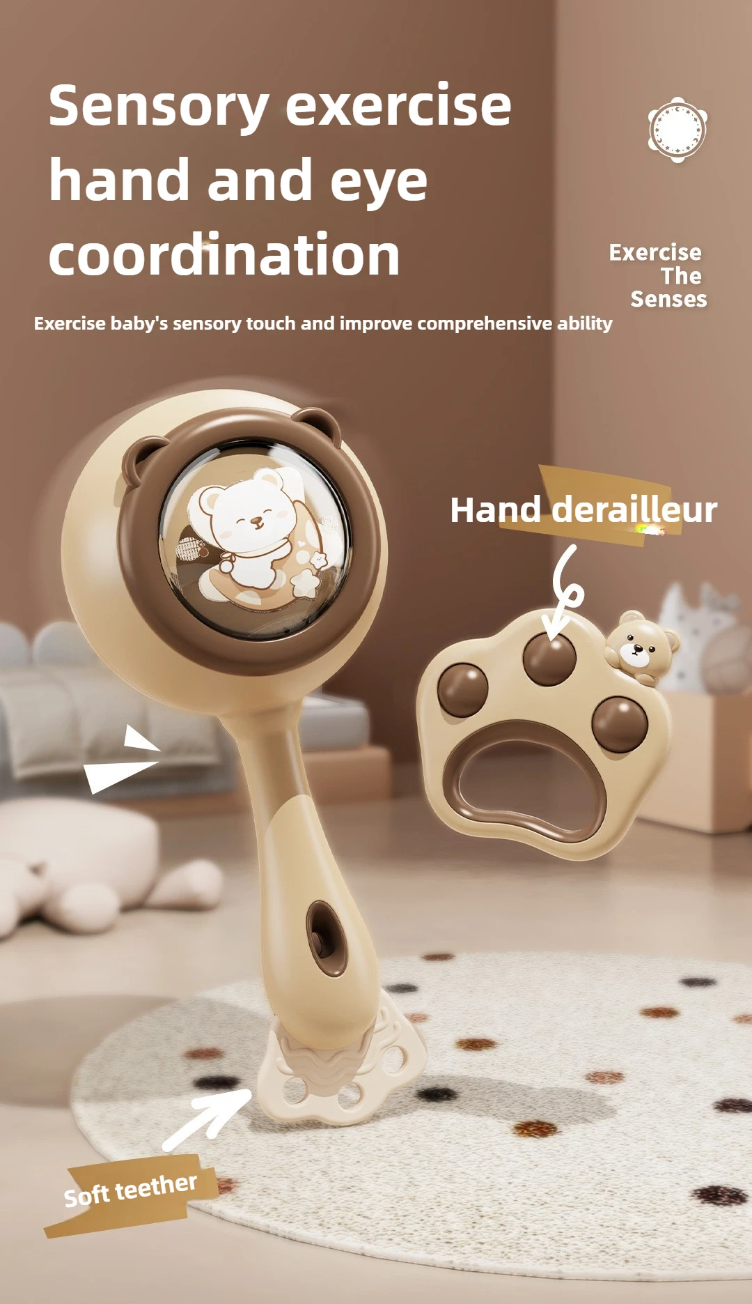 Juguete de campana de manivela para bebé con rompecabezas y agarre masticable: juego sensorial de aprendizaje temprano para educación infantil y juego calmante
