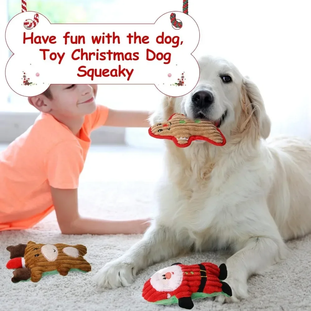El juego de 3 piezas de juguetes chirriantes incluye tres estilos: Papá Noel, renos y hombre jengibre.El lindo diseño de dibujos animados lo hace más interesante.