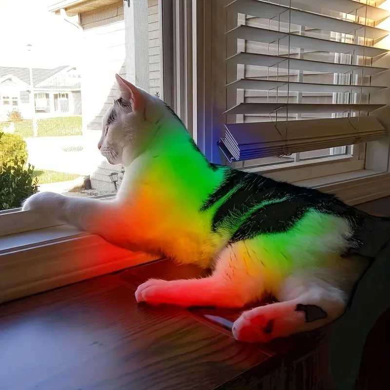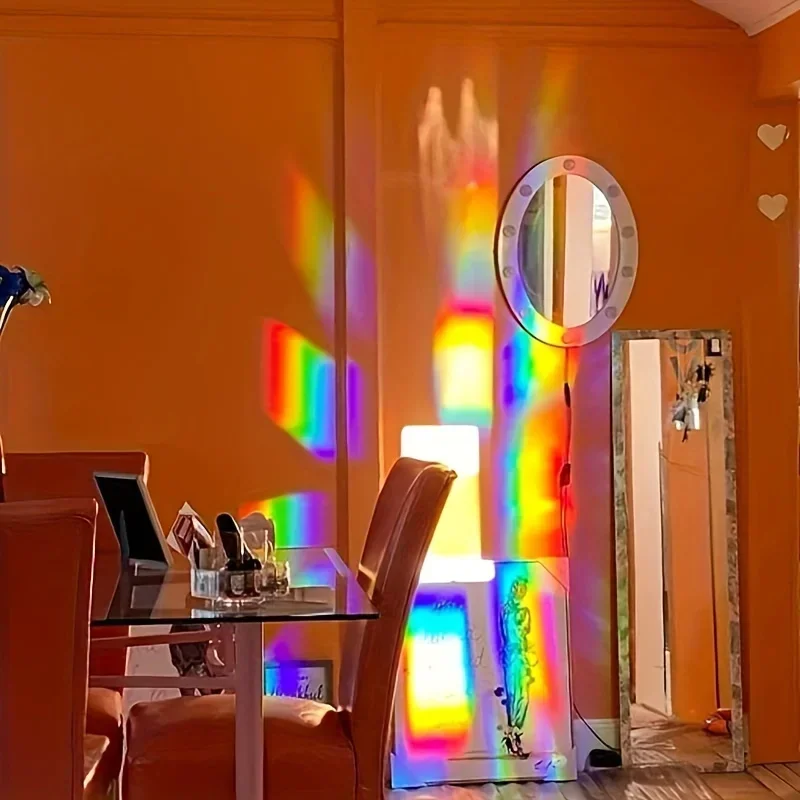Cuesta encontrar el ángulo y que funcione como prisma y descomponga la luz en colores.
