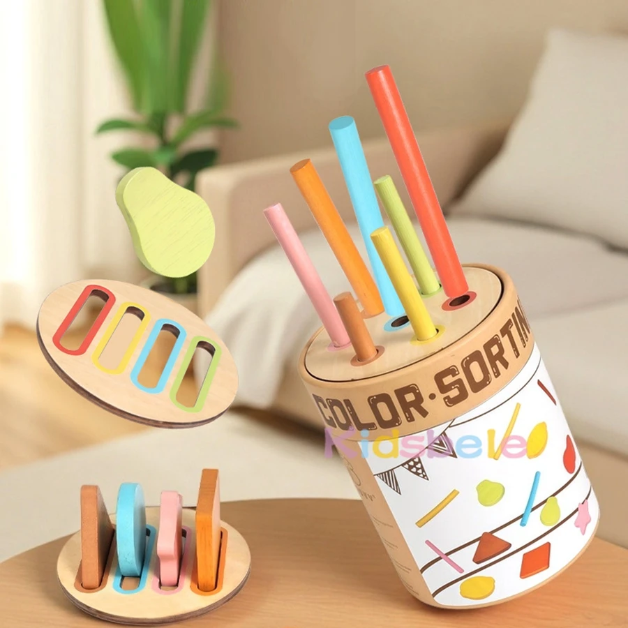Este juguete Montessori de madera para clasificar colores está diseñado para estimular el desarrollo cognitivo temprano a través del juego práctico.Los niños pequeños pueden clasificar e insertar clavijas de madera de colores en ranuras a juego, creando naturalmente el reconocimiento de colores, las habilidades motoras finas, la concentración y la coordinación ojo-mano.