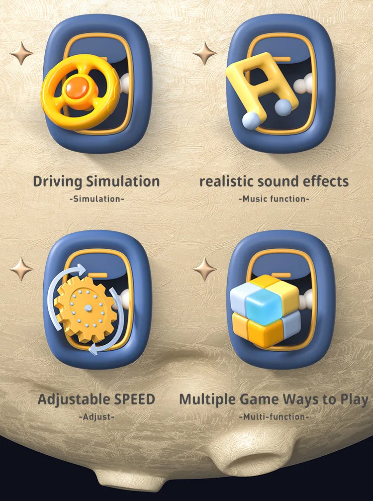 Divertido juego de actividades:Los niños pueden girar el volante hacia la izquierda o hacia la derecha para pasar los coches que se aproximan de forma segura.Golpando el que se aproxima o el cinturón de aislamiento, el juego es