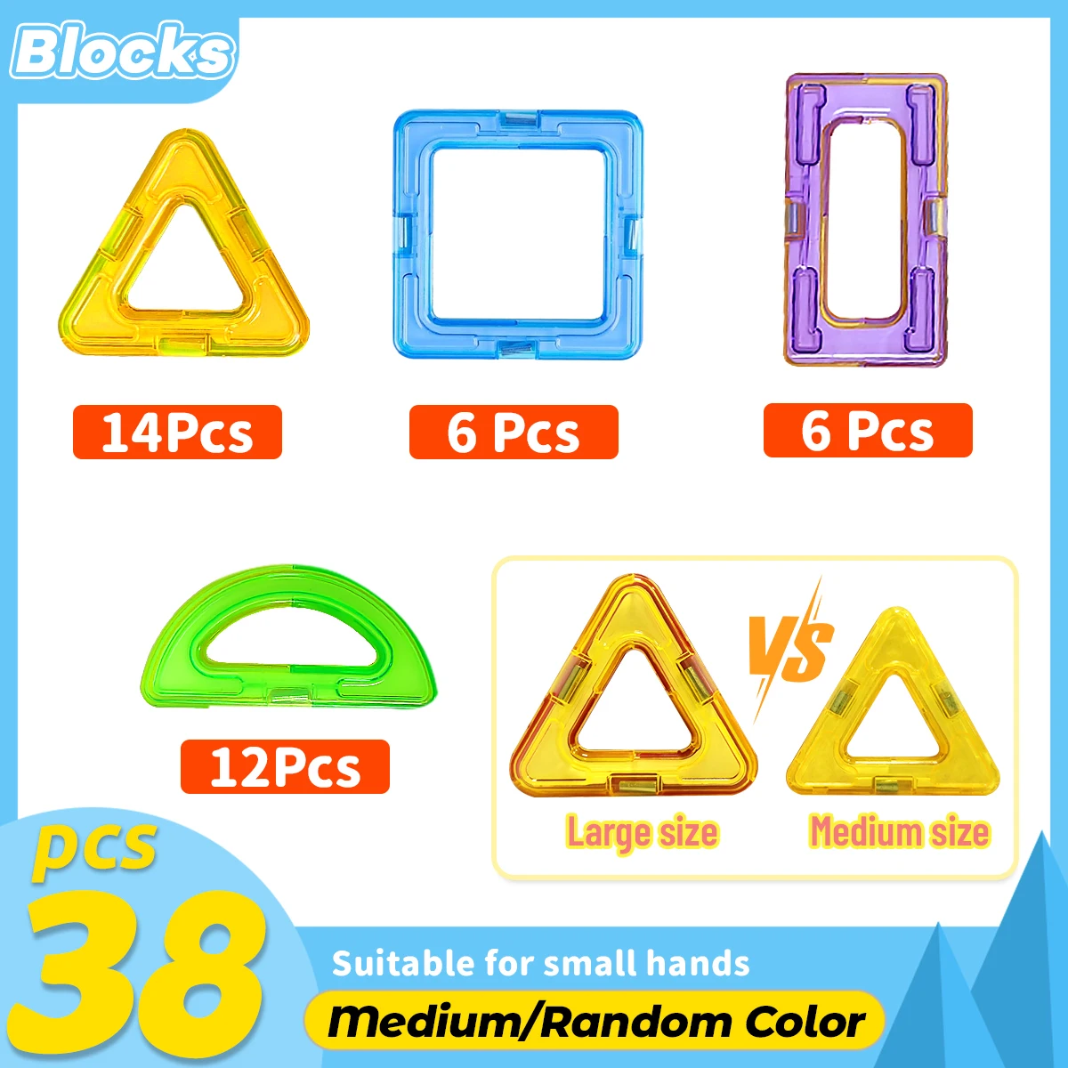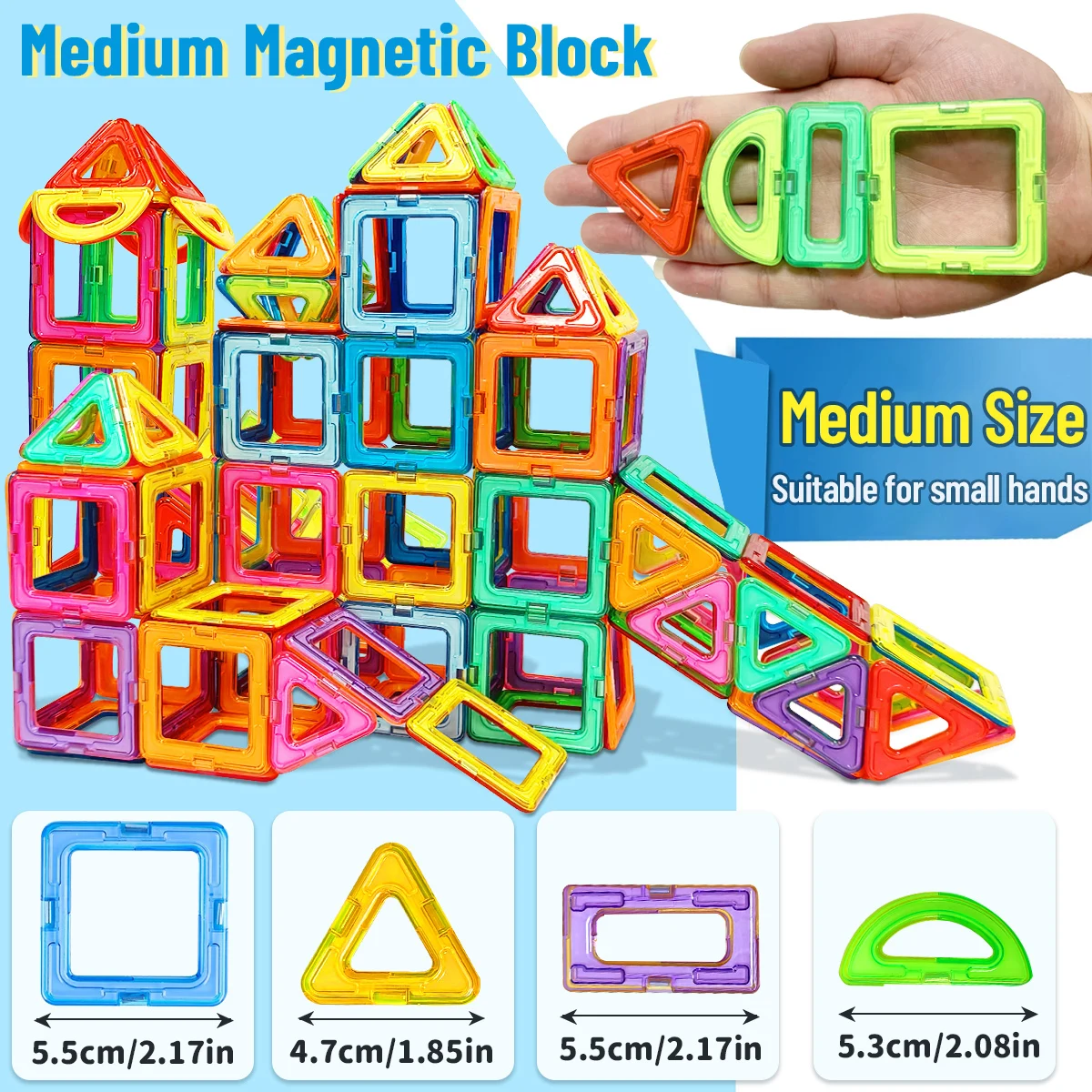 Comprar Juguete de construcción de bloques magnéticos de tamaño mediano, juego de construcción educativo de aprendizaje STEM para jóvenes de 3 a 12 años, regalo de color aleatorio