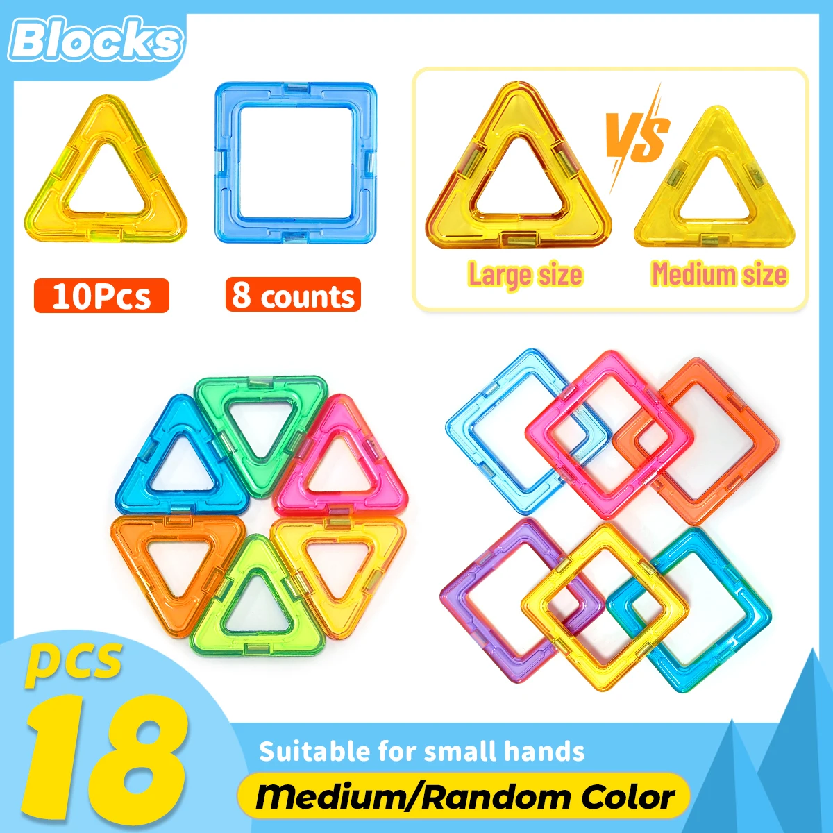 Juguete de construcción de bloques magnéticos de tamaño mediano, juego de construcción educativo de aprendizaje STEM para jóvenes de 3 a 12 años, regalo de color aleatorio