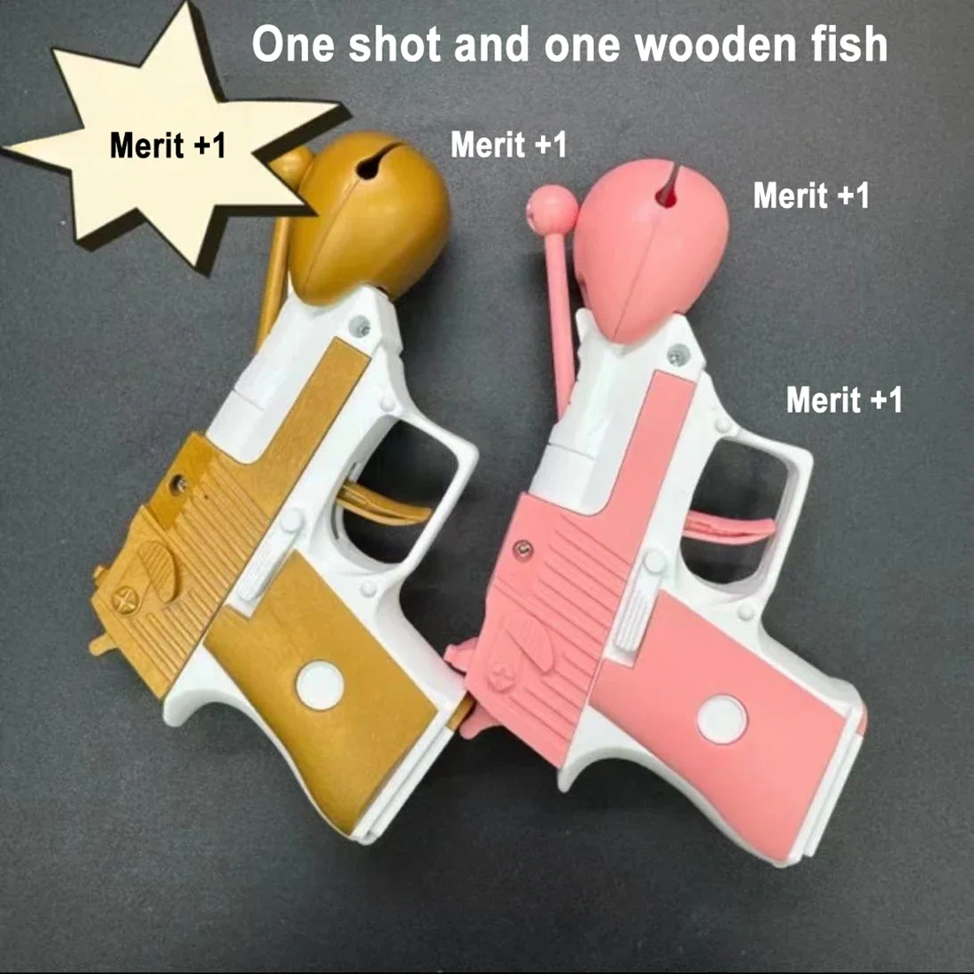 Juguete creativo para aliviar el estrés para niños y adultos, juguete sensorial con 1 pistola de rábano, pez de madera, utilería de descompresión única