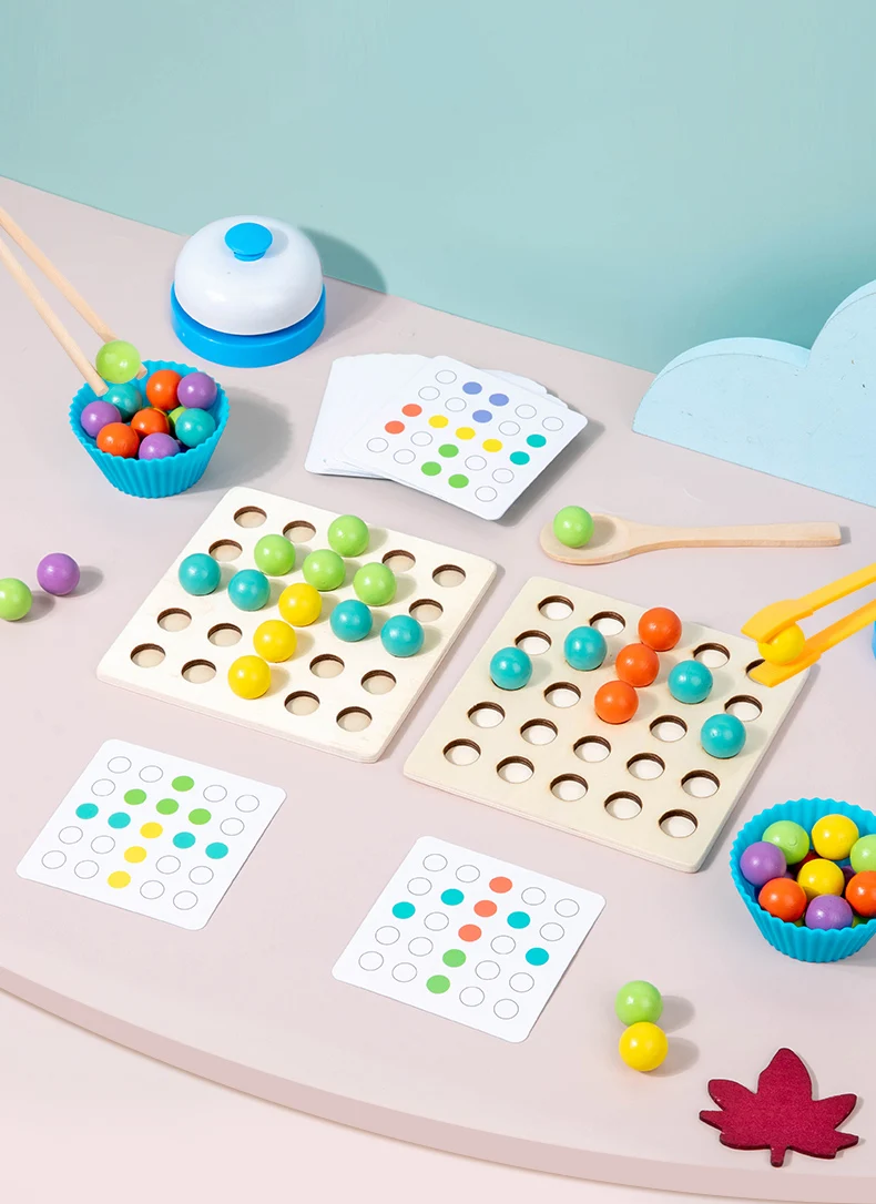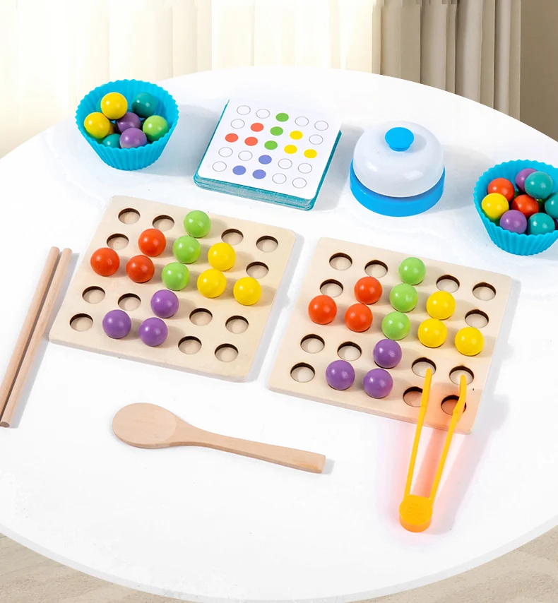 Juguete de cuentas con Clip de madera Montessori para niños, entrenamiento de Motor fino, clasificación de colores, juguetes educativos de Aprendizaje Temprano a juego