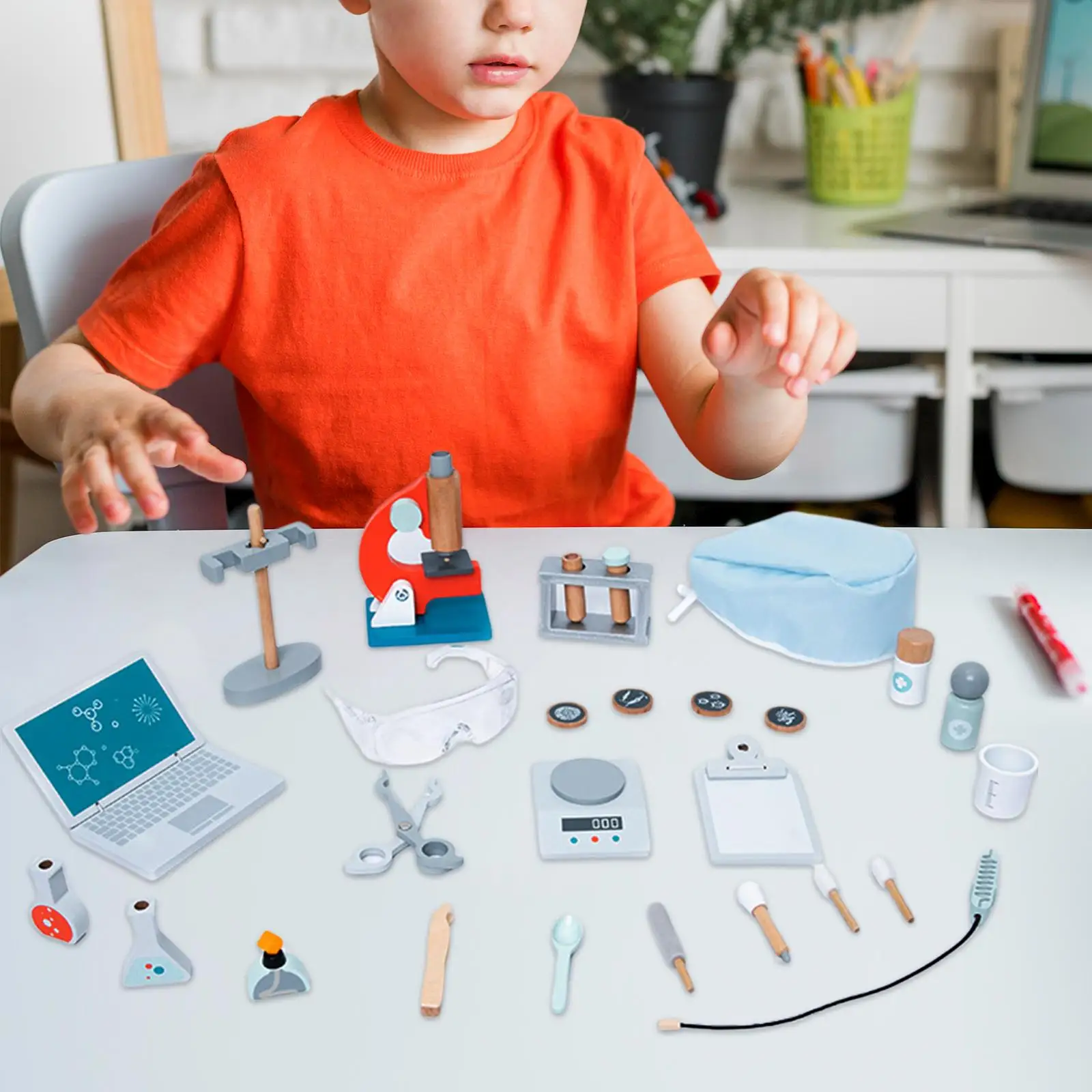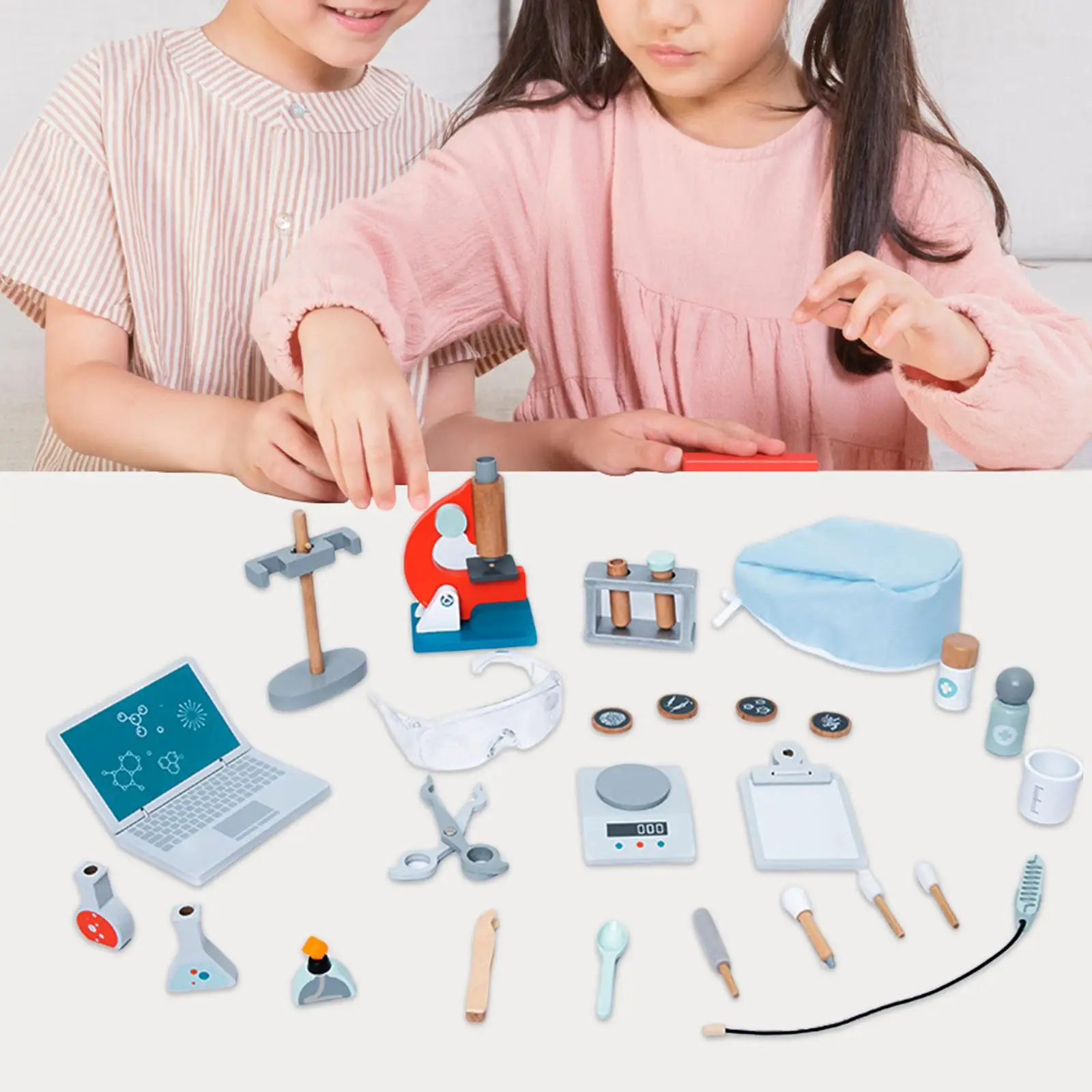Comprar Juguete educativo de aprendizaje de Laboratorio de Ciencia, herramientas de madera, conjunto de ciencia para niñas y niños pequeños