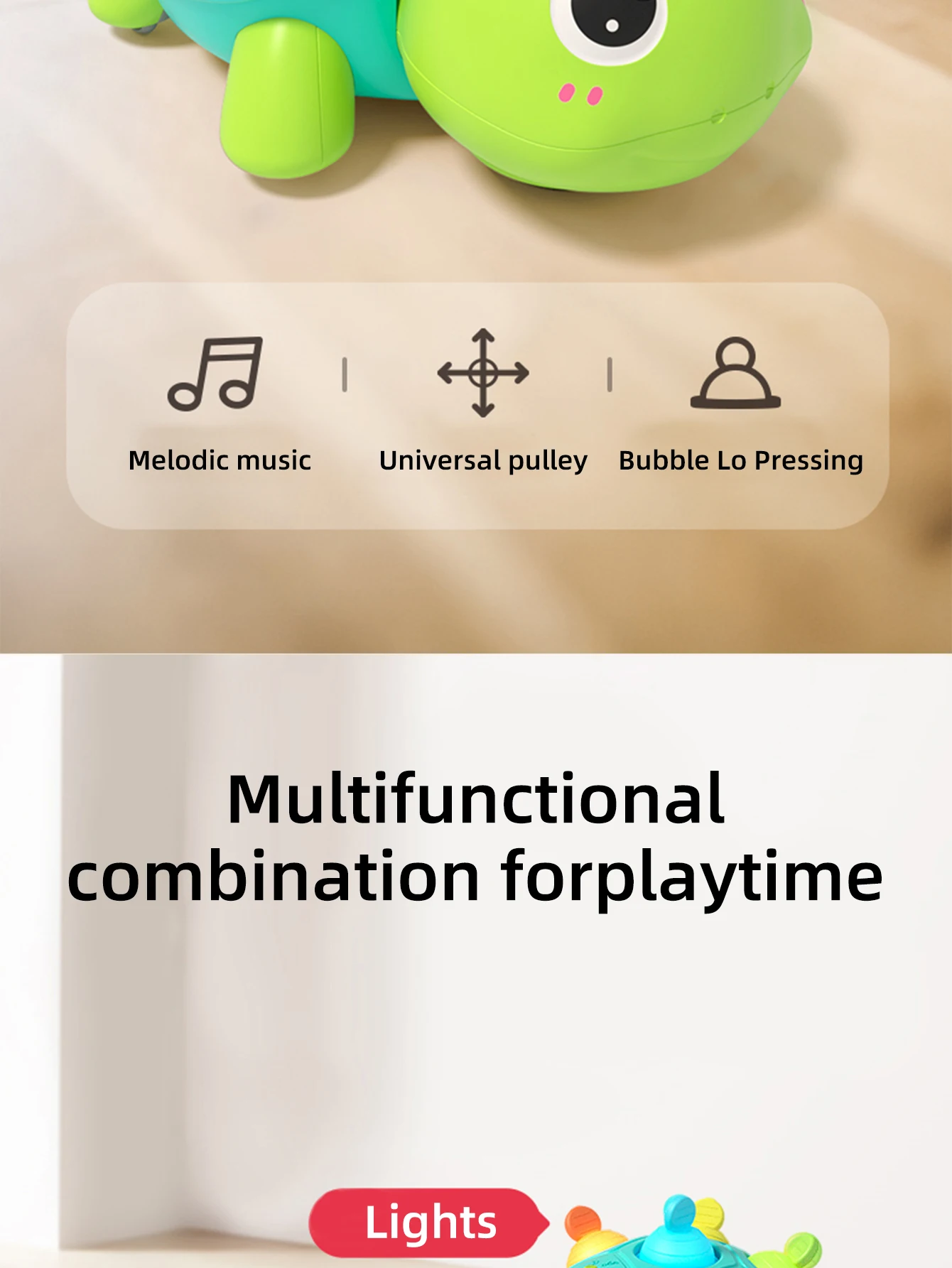 【Desarrollo infantil】 - Este es un divertido juguete musical para niños y niñas.A los niños les encantará interactuar con la tortuga cuando el cangrejo se mueve con la luz y la música.