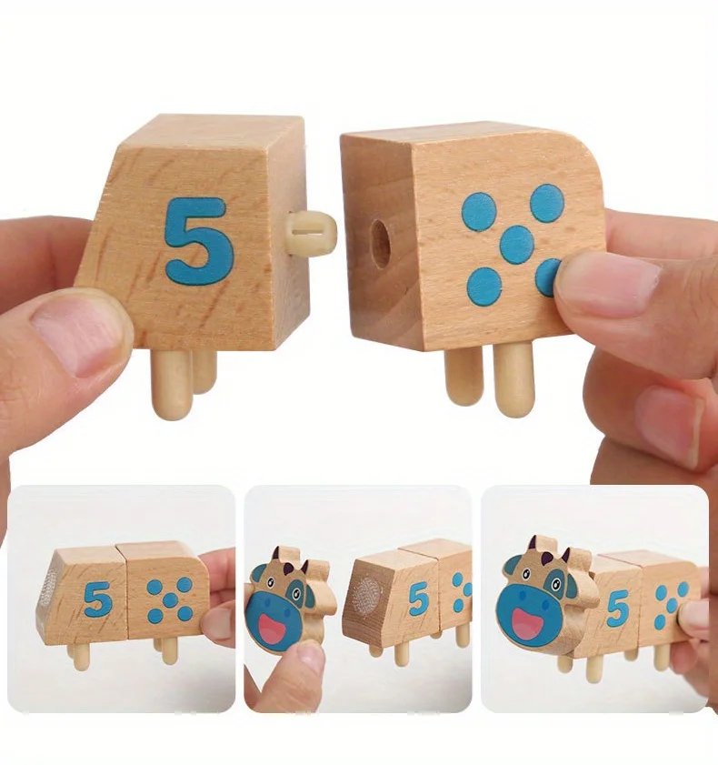 Juguete de madera a juego con números de vaca, juguetes apilables de animales para niños pequeños, juguetes educativos de matemáticas de habilidad motora fina sensorial de Color Montessori - imagen 5