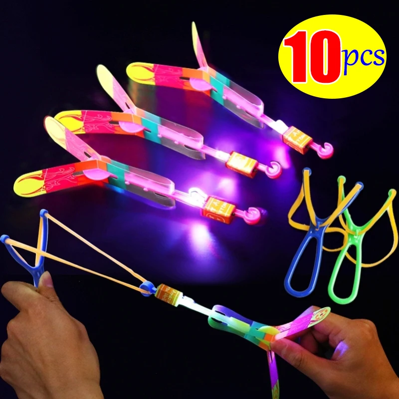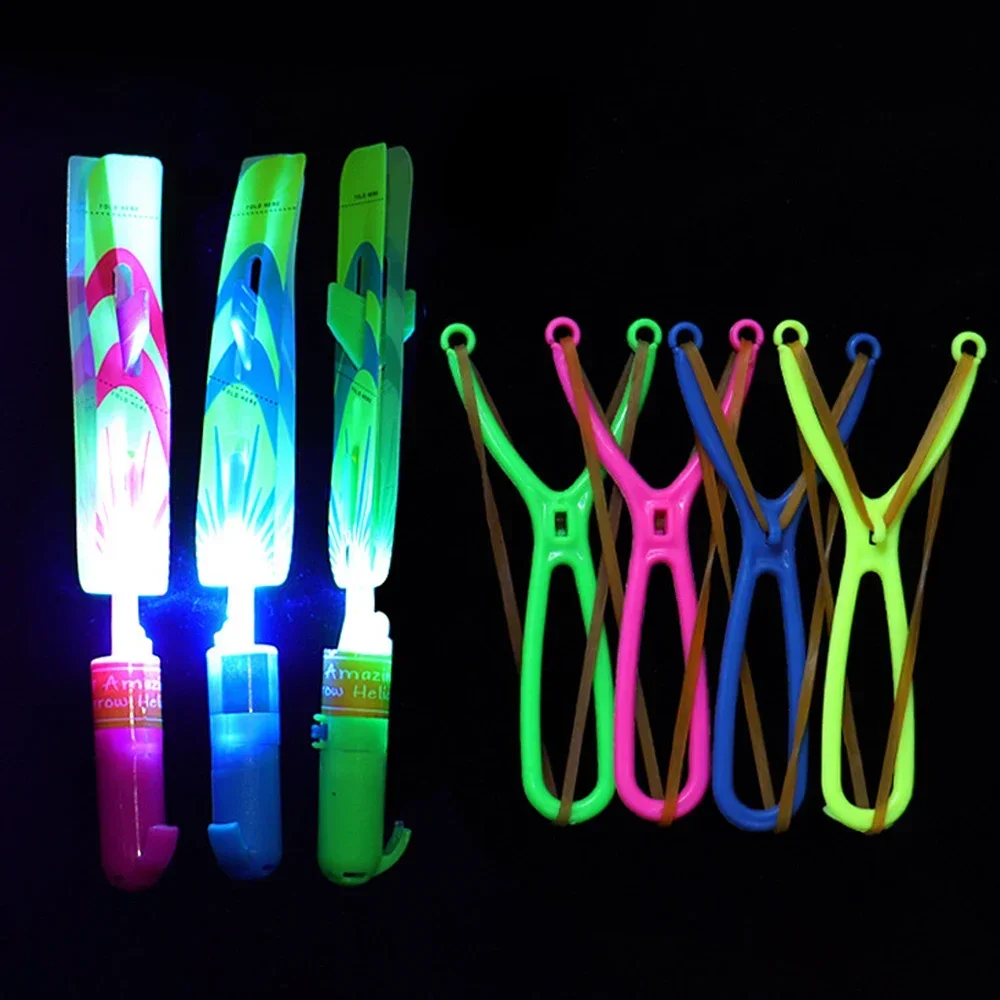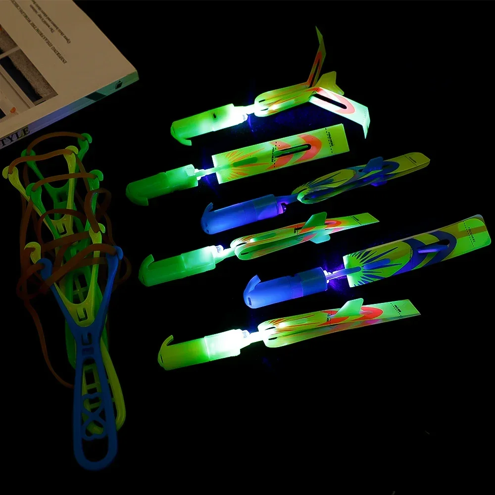 Juguete mágico luminoso de flecha LED, juguete luminoso para fiesta al aire libre, regalo divertido, banda de goma, eyección luminosa, cohete, avión, juguetes voladores