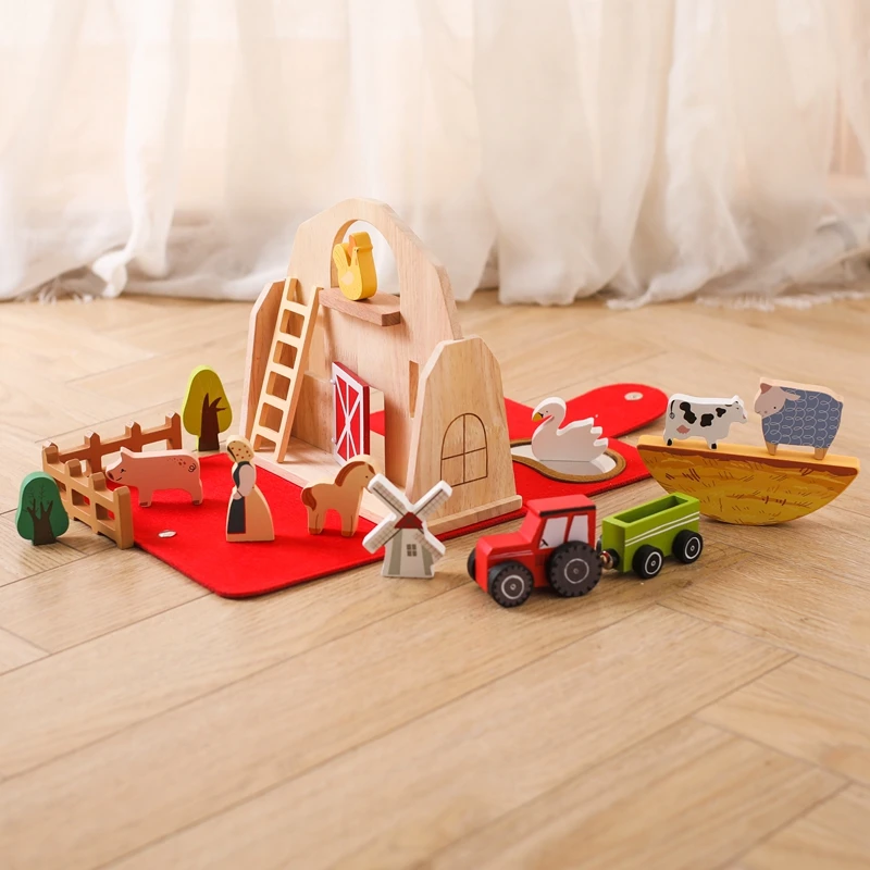 Granero de madera para bebés, animales simulados, apilable juguete, granja Montessori, bloques de construcción, juguete de equilibrio, juego educativo de rompecabezas para recién nacidos