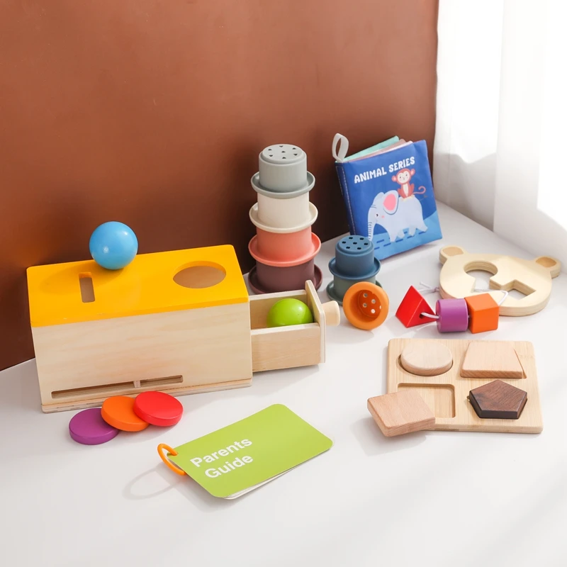 Juguete Montessori para niños, caja de cajón de permanencia de macarrón de madera para bebé, juguetes sensoriales educativos con forma de Color de tambor ocupado