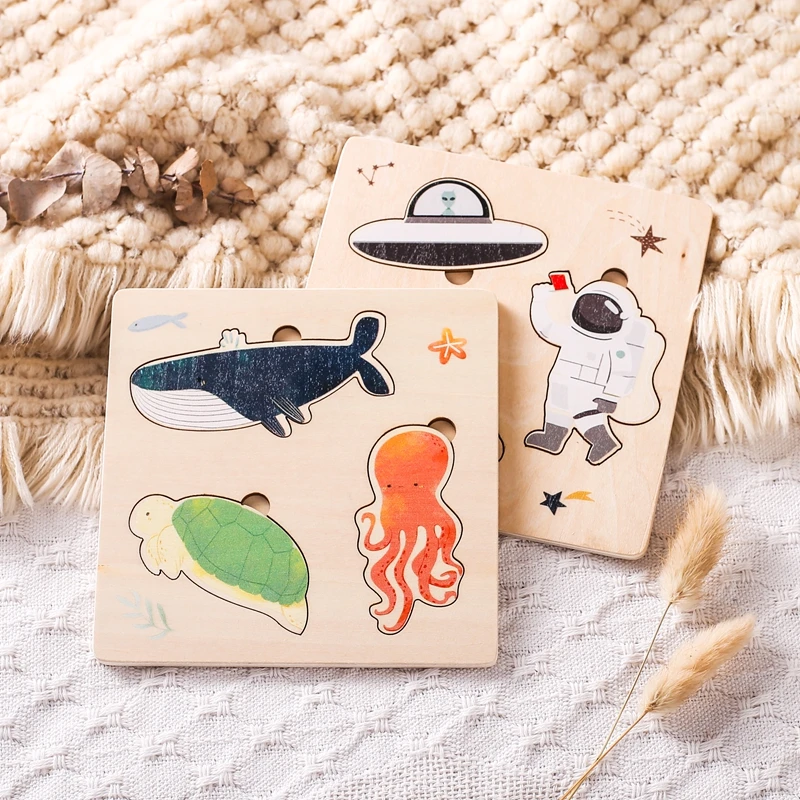 1 pieza de juguete Montessori de madera dibujos animados ballena Tangram 3D rompecabezas juguete cognitivo Aprendizaje Temprano juguetes educativos niños regalo