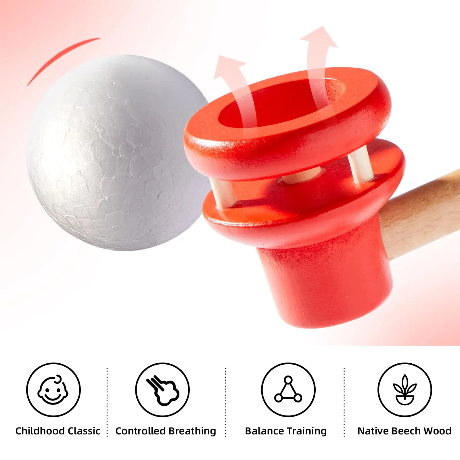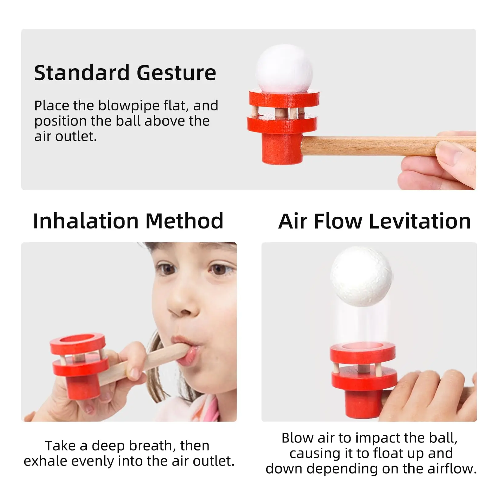 【Juguete Montessori 3 en 1】Este juguete inflable tiene tres formas de jugar: hacer sonar un sonido, hacer sonar una pelota flotante, hacer inflar un globo y soltar el globo.Ejercite los pulmones de los niños, mejore los problemas respiratorios de los niños.