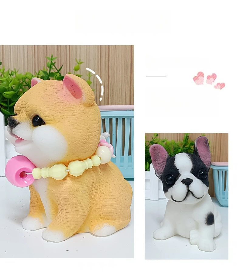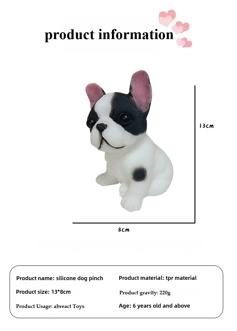 Desafortunadamente, el bulldog francés llegó con las orejas y el cuerpo ligeramente deformados, y se esforzaba por mantenerse de pie (se cae), qué lástima.