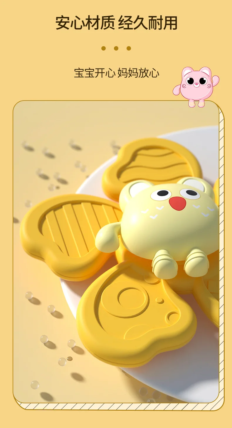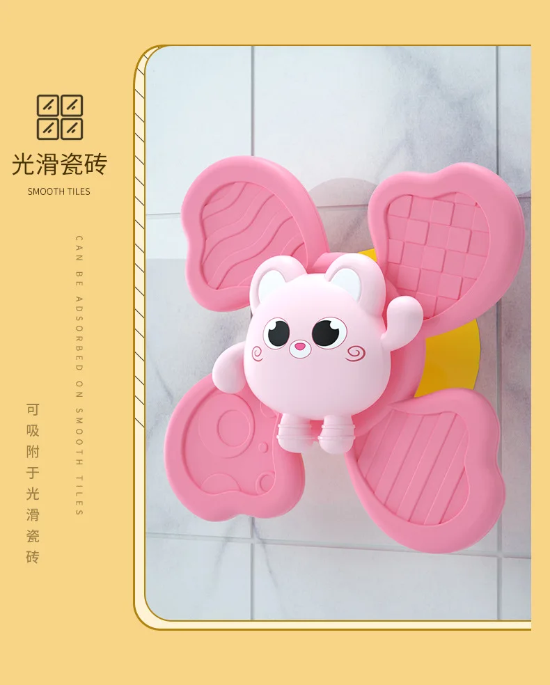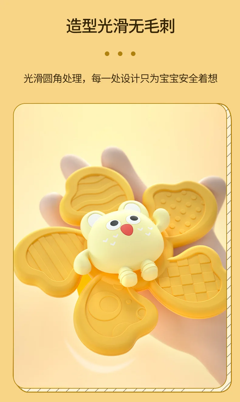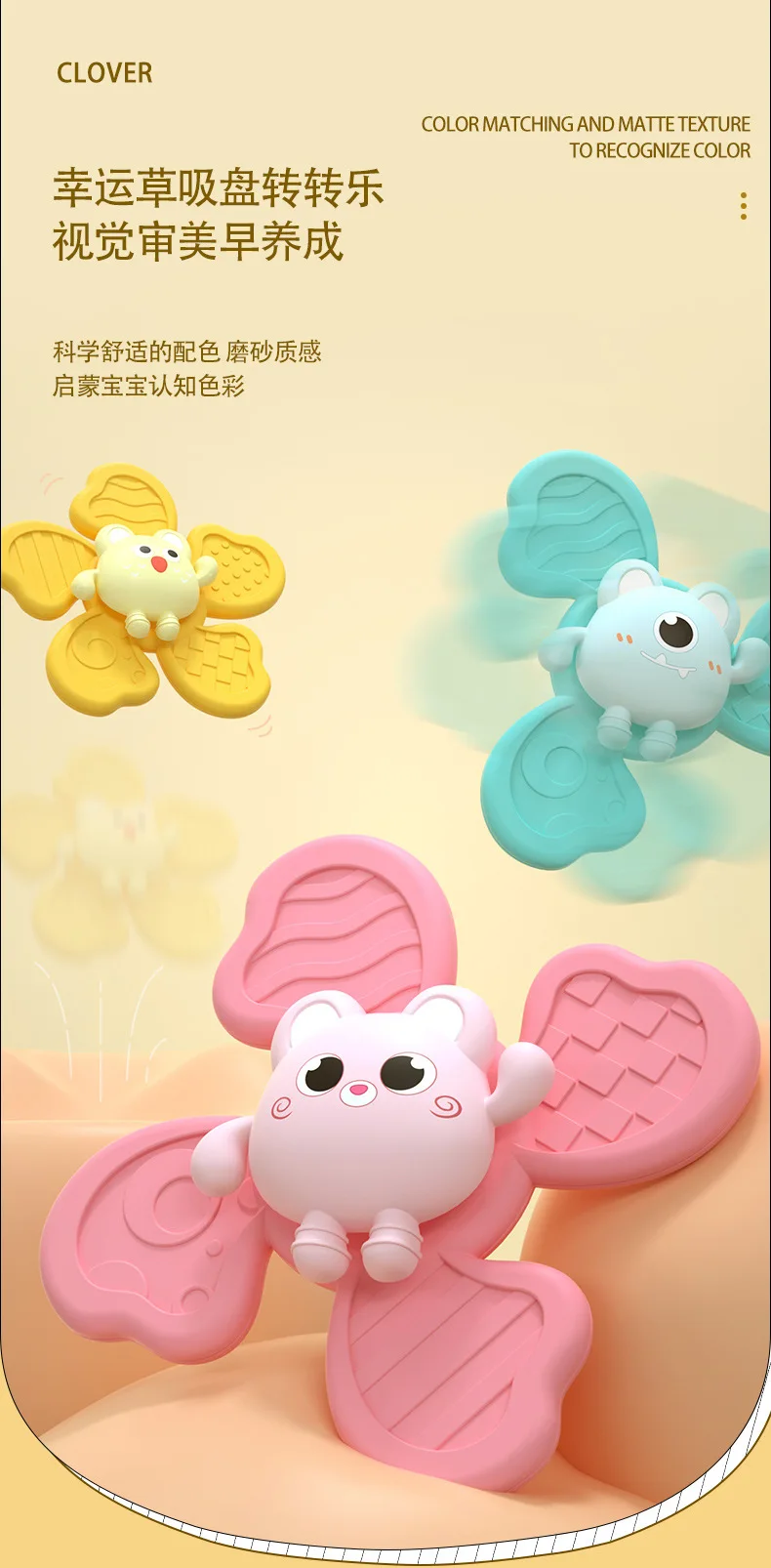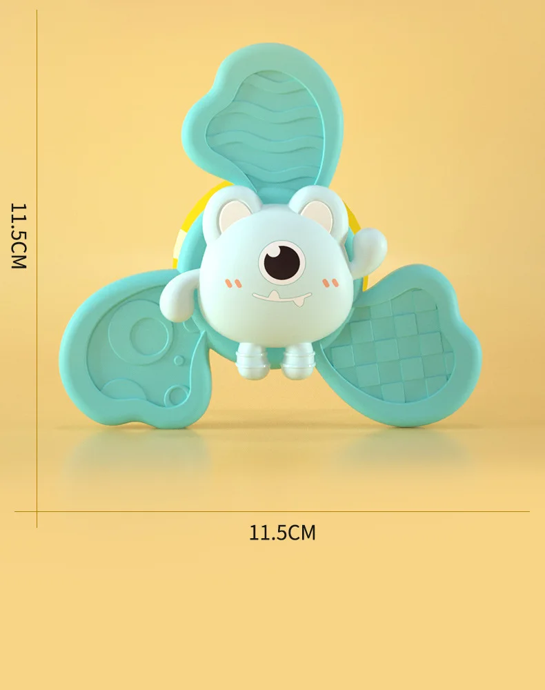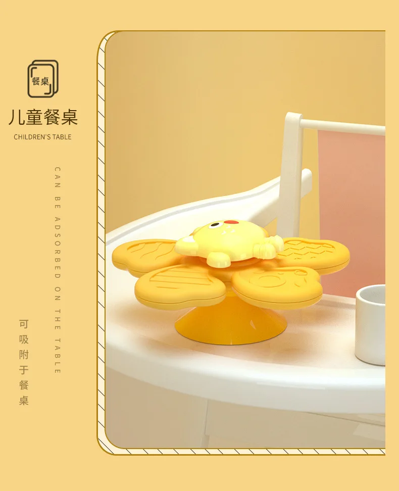 Tiene algunas esferas en el interior que hacen ruido. Buena ventosa. Genial para tener en el coche o en la base de la silla alta del bebé.
