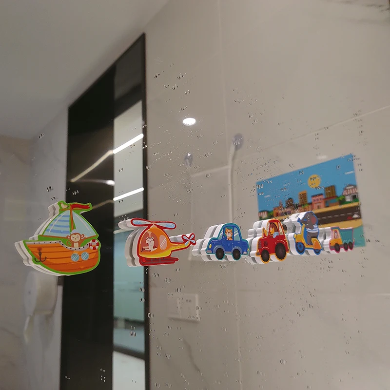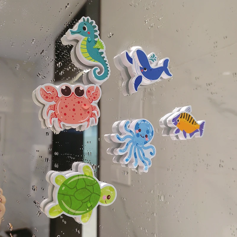 Las piezas de espuma suave se adhieren a las paredes de los azulejos cuando están mojadas.