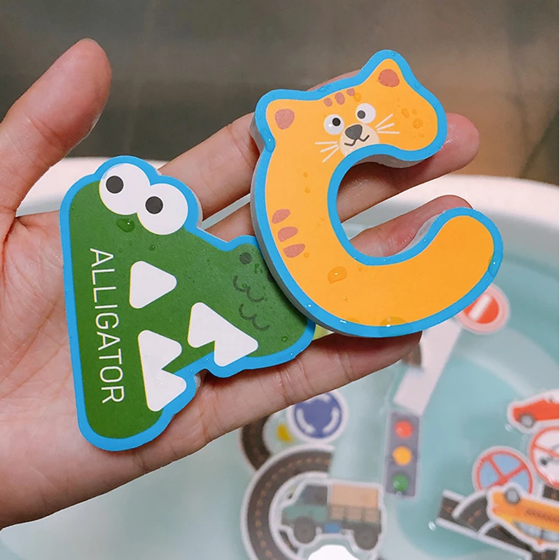 Juguetes de baño con letras de tren para bebé, animales EVA suaves, rompecabezas Alpanumérico, juguetes para Baño, juguetes educativos para edades tempranas, juguetes acuáticos flotantes para niños