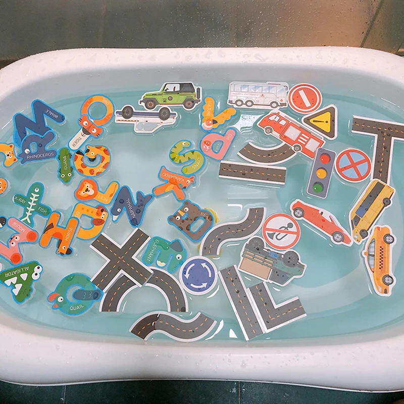 Juguetes de baño con letras de tren para bebé, animales EVA suaves, rompecabezas Alpanumérico, juguetes para Baño, juguetes educativos para edades tempranas, juguetes acuáticos flotantes para niños