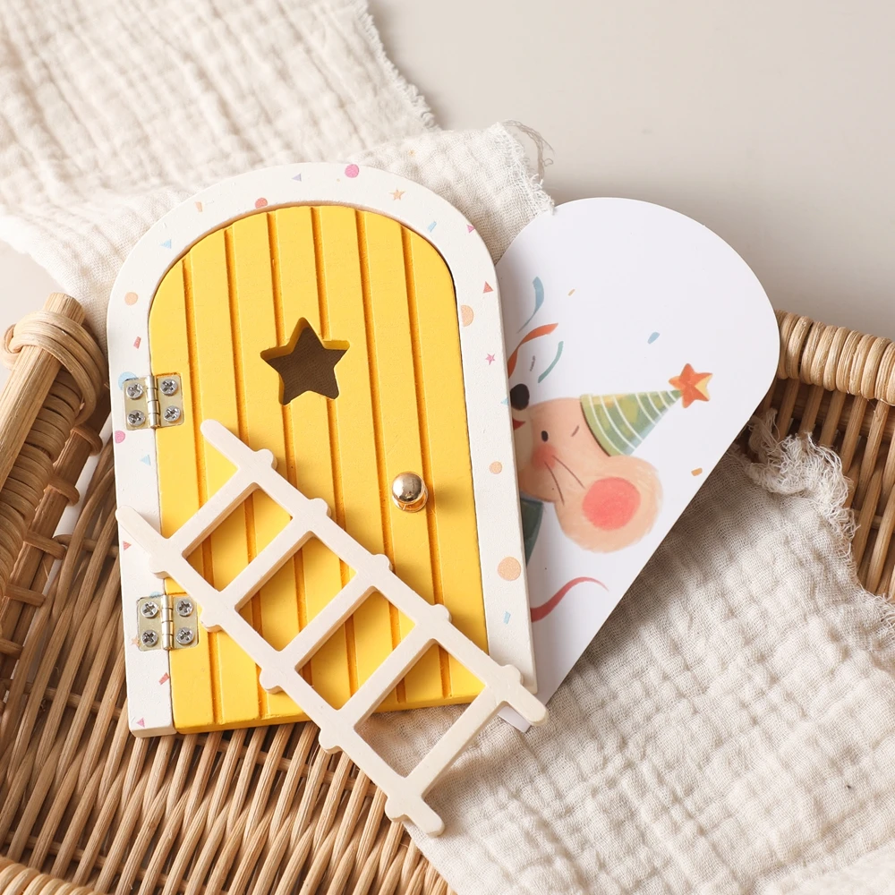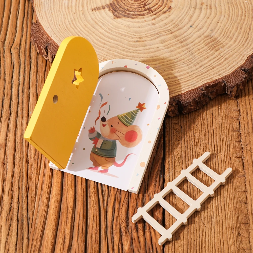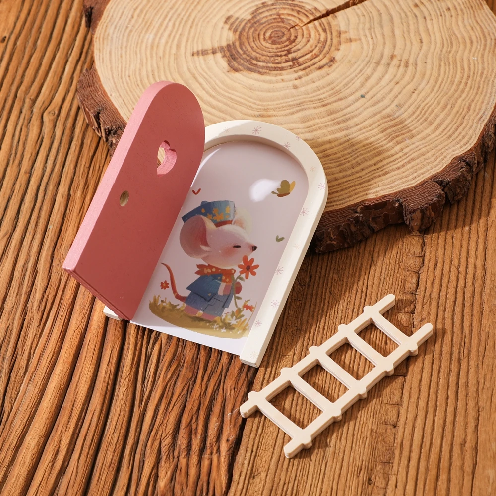 Juguetes para bebés, accesorios Montessori, puerta de elfo de dibujos animados, decoración de habitación, casa de muñecas, Mini decoraciones para el hogar, decoración de puerta de elfo de cuento de hadas de madera